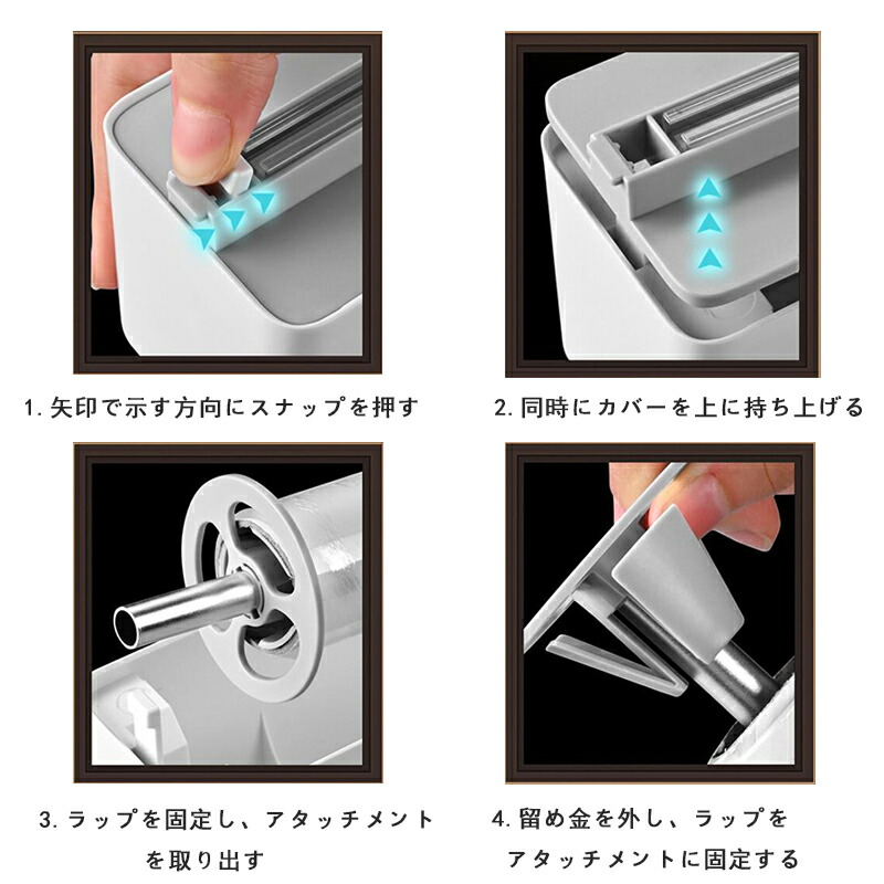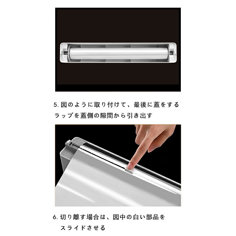 「使いやすい」:ラップカットの底部は、完全に滑らかな表面にしっかりと吸着できる小型の吸盤で設計されています。吸盤が滑ったり転倒したりするのを防ぎ、使い勝手が良くなります。そして、このラップフィルムディスペンサーは非常に使いやすく、使用するのに数ステップしかかからず、簡単にラップフィルムを手に入れることができます。