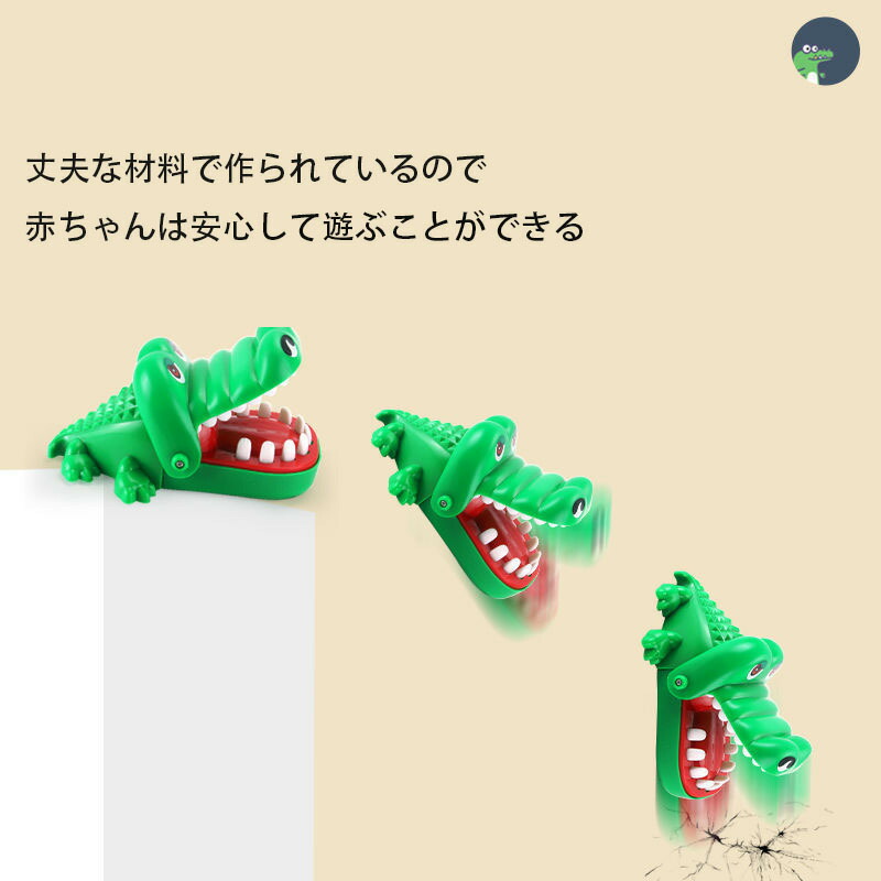 遊び方:ワニさんの口を開けて仲間と順番を決めて1本ずつお好きな歯を押していて虫歯を押す人は早速に指を抜き出します、噛まれていない人は最後の勝者!