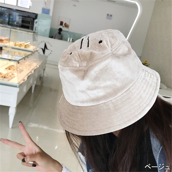 顔文字バケットハット8色帽子ハットカラ