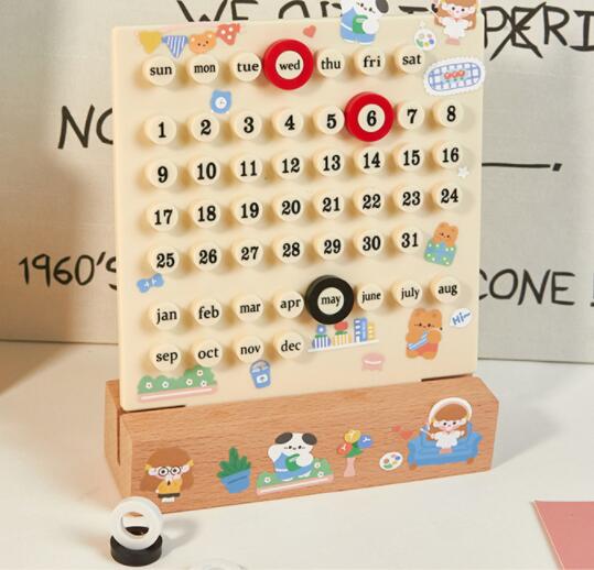 万年カレンダー卓上アクリル 木製木ウッド携帯スタンド 韓国インテリア雑貨おしゃれかわいいシンプル北欧大きい子ども部屋キッズ2023組み合わせずっと使える可愛い入れ替え