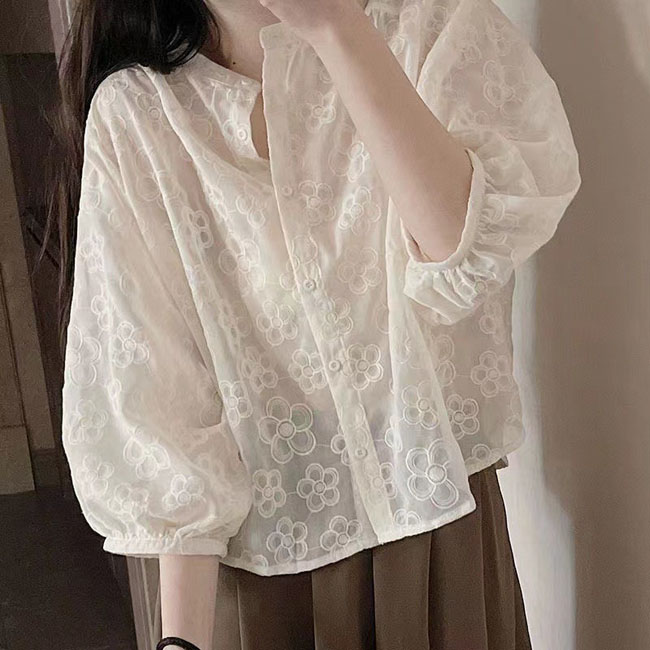 シアースリーブ ドッキングシャツ ボウタイシャツブラウス