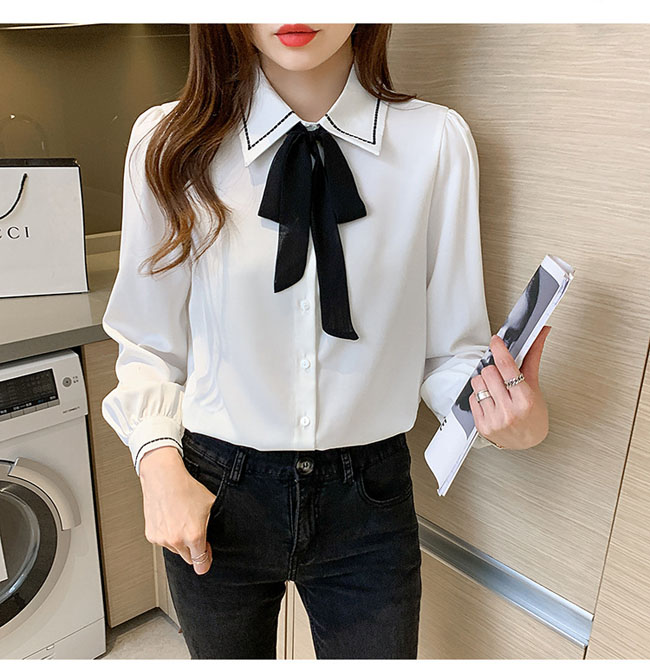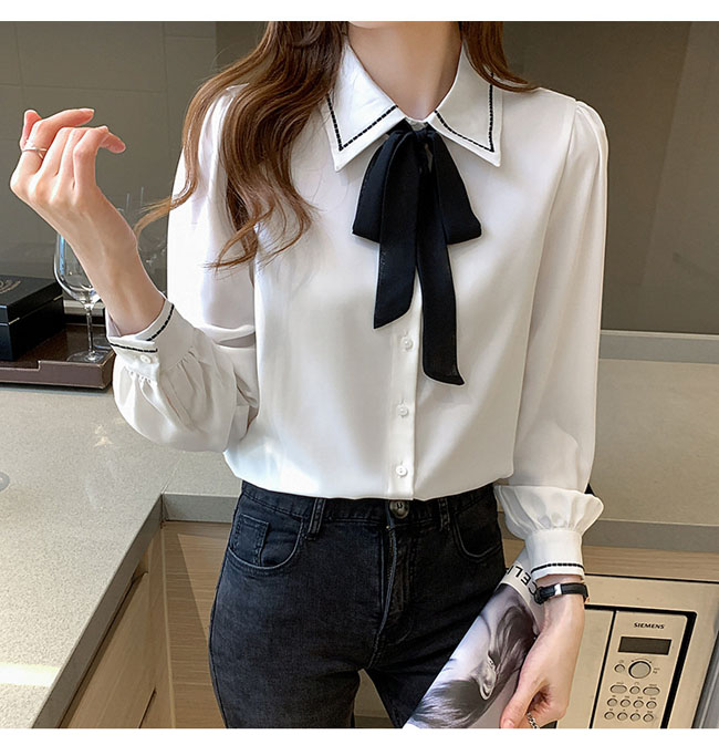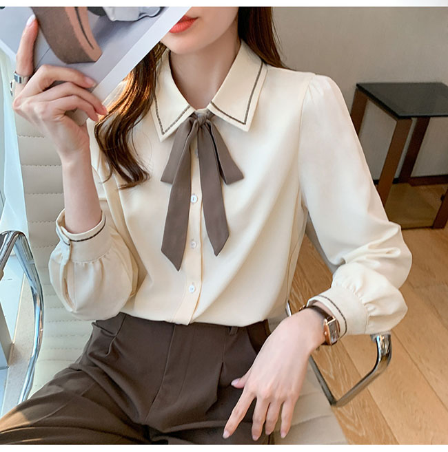 シアースリーブ ドッキングシャツ ボウタイシャツブラウス