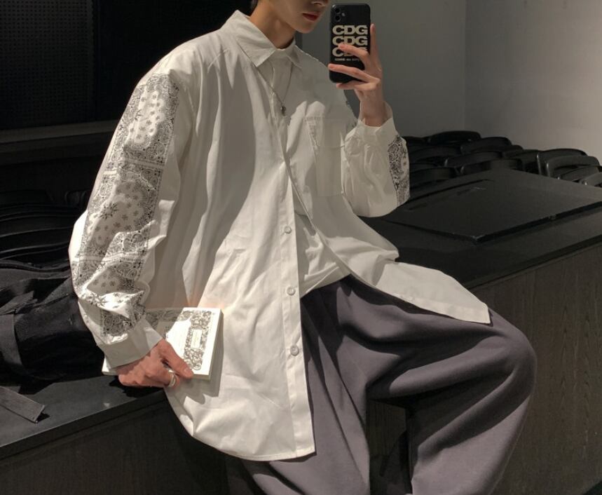 シアースリーブ ドッキングシャツ ボウタイシャツブラウス