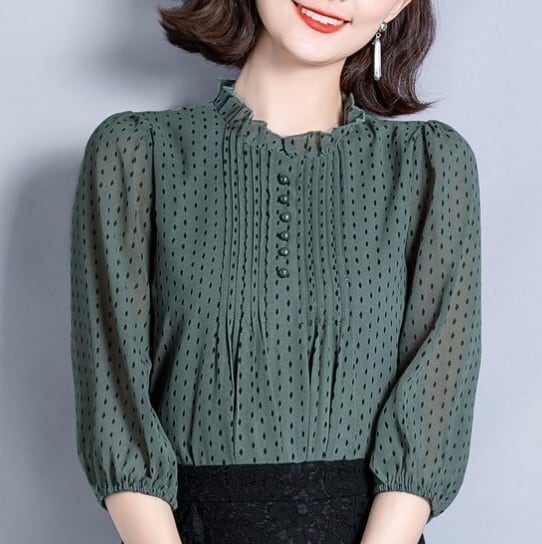 シフォンブラウス シアーブラウス ボリューム袖