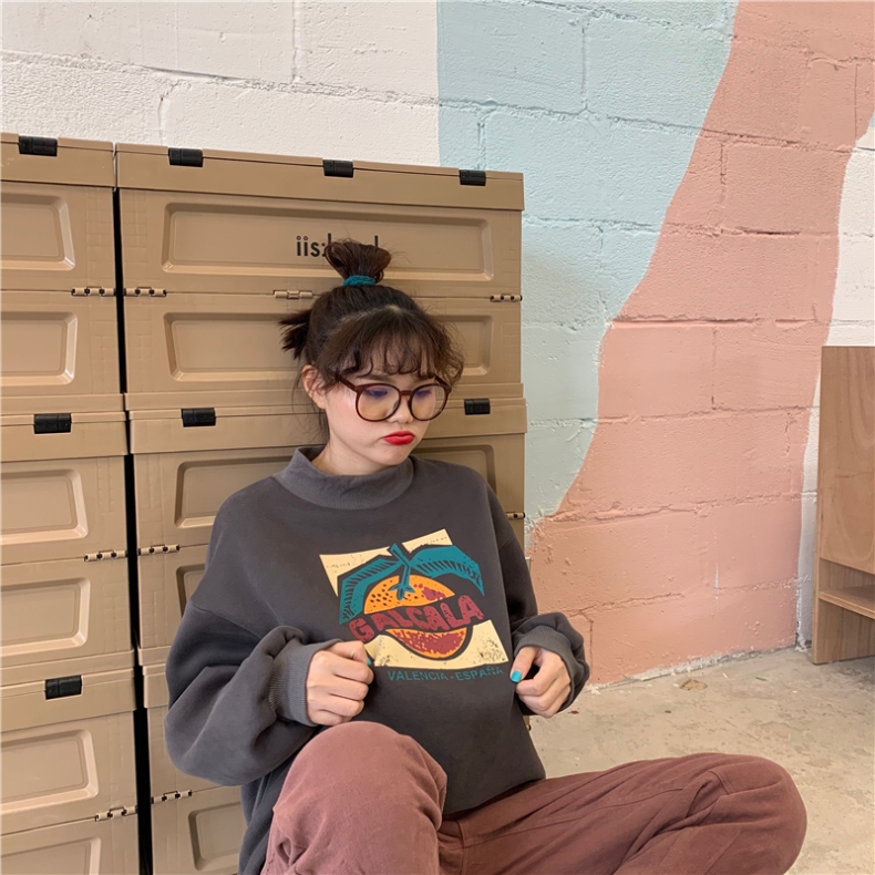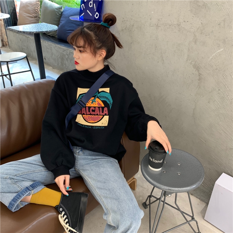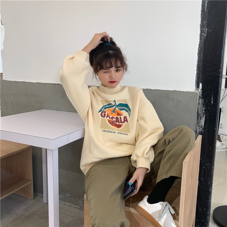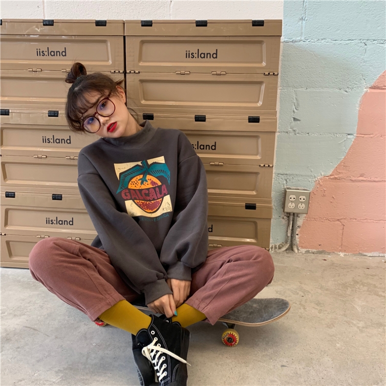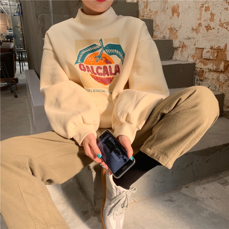 ハイネックトレーナースウェットトップス長袖カットソーロゴプリントカラフルヒップホップHIPHOPレディースメンズガールズストリート奇抜派手個性的韓国おしゃれ可愛いピンクグレーブラックベージュ