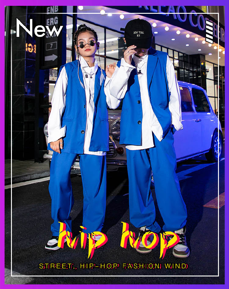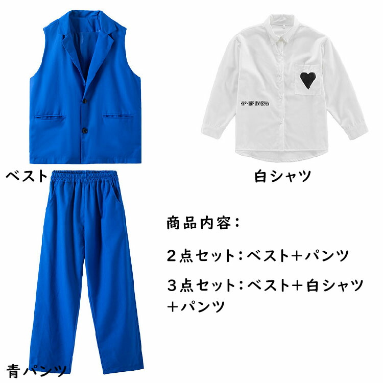 キッズ ダンス衣装 青 ベスト セット