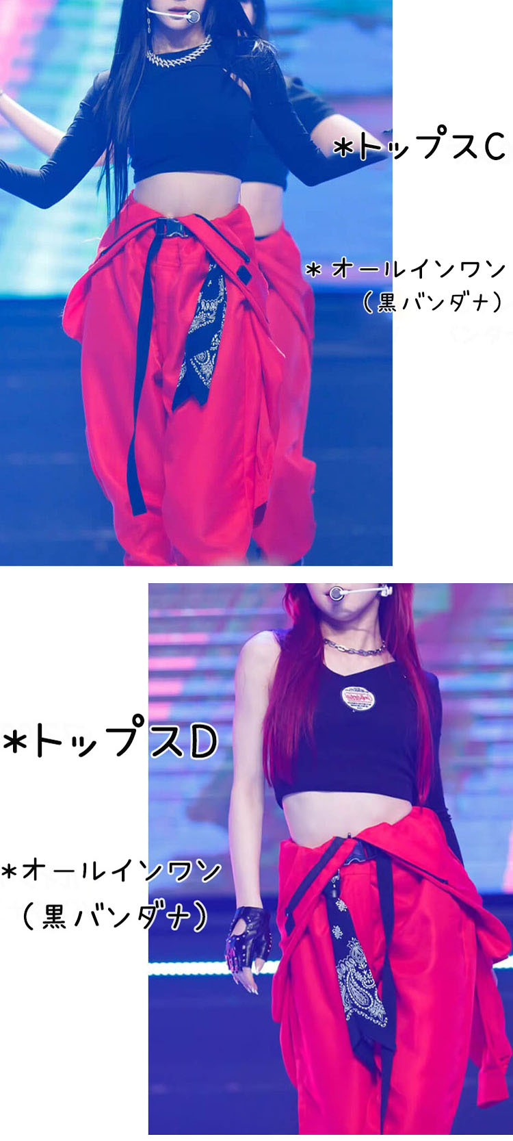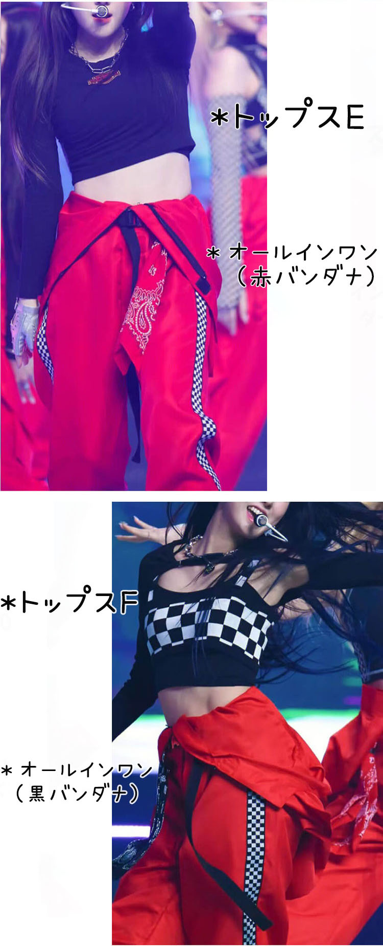 Key0: トップスA トップスB トップスC トップスD トップスE トップスF トップスG トップスH トップスI オールインワン(赤バンダナ) オールインワン(黒バンダナ)