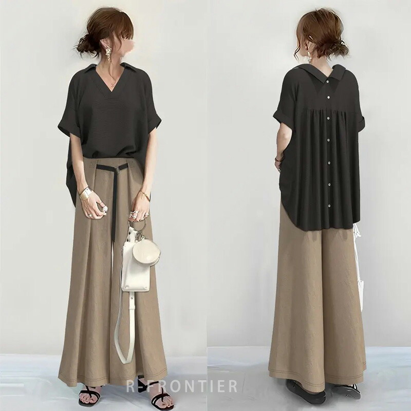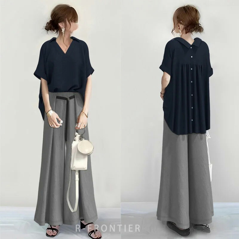 シアースリーブ ドッキングシャツ ボウタイシャツブラウス