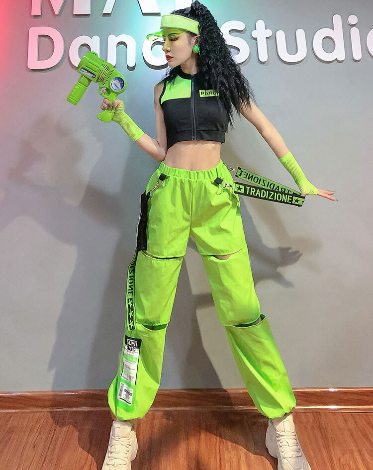 全2色 パンツ ズボン ウエストゴム 切り替え 体型カバー 大きいサイズあり ユニセックス 男女兼用 原宿系ファッション 韓国風 ダンス 衣装 ダンサー ヒップホップ HIPHOP 個性 奇抜 かわい