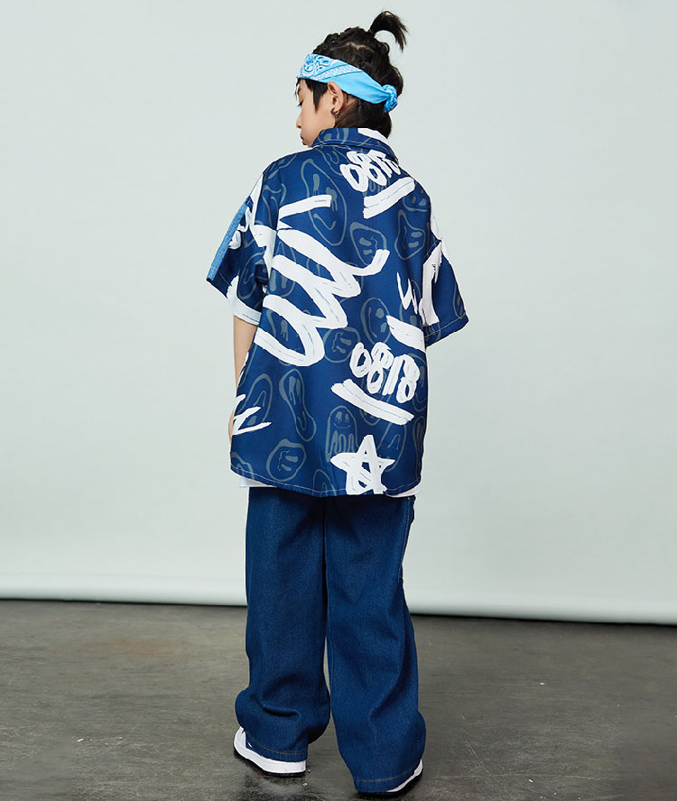 全2色 パンツ ズボン ウエストゴム 切り替え 体型カバー ヴィンテージ風 レトロ調 原宿系ファッション 韓国風 ダンス 衣装 ダンサー ヒップホップ HIPHOP 個性 奇抜 かわいい 青文字系 ボ