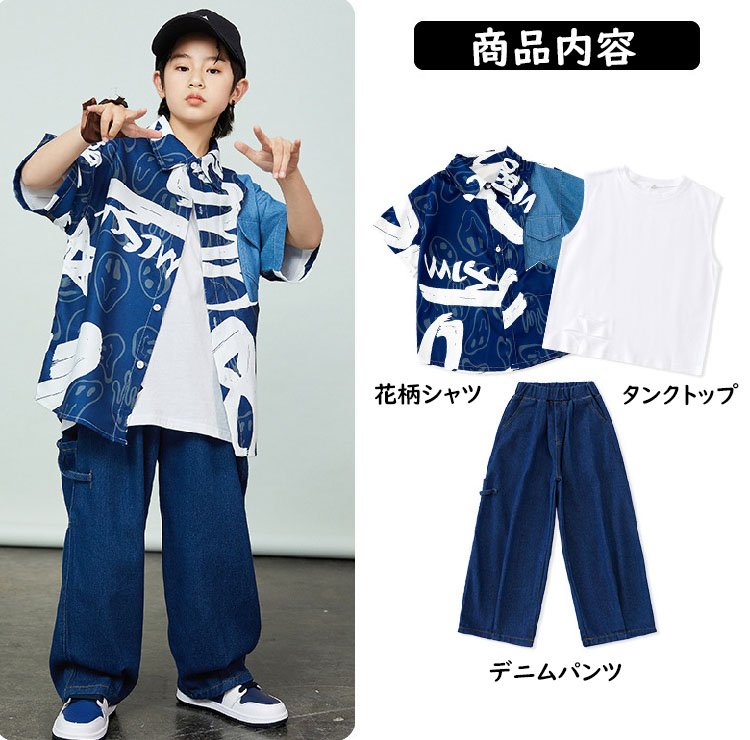 horizontal-key: タンクトップのみ 花柄シャツのみ デニムパンツのみ 花柄シャツ+デニムパンツ 上下3点セット