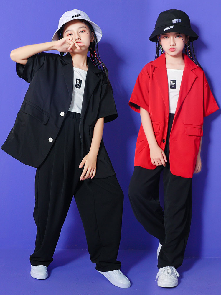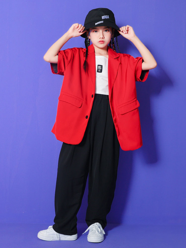 ダンス衣装 赤 黒 ヒップホップ キッ