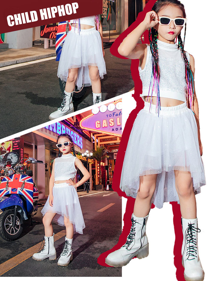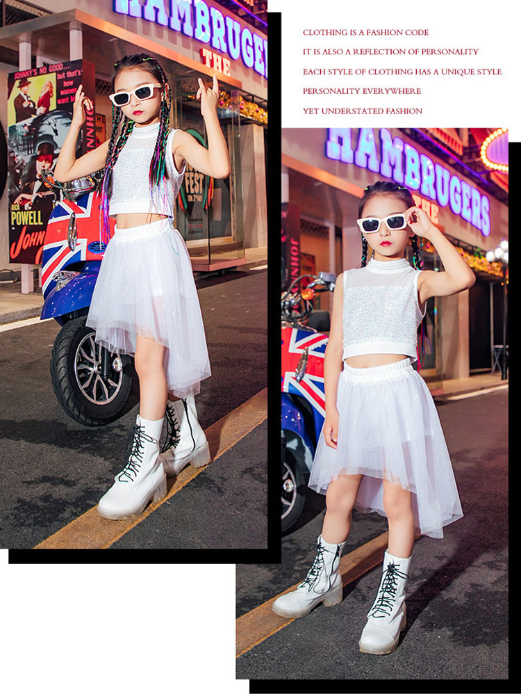 ダンス 衣装 キッズ へそ出し スパーコール セットアップ トップス スカート ジャズダンス ガールズ 韓国 ヒップホップ hiphop 演出服 応援団 練習着 120 170