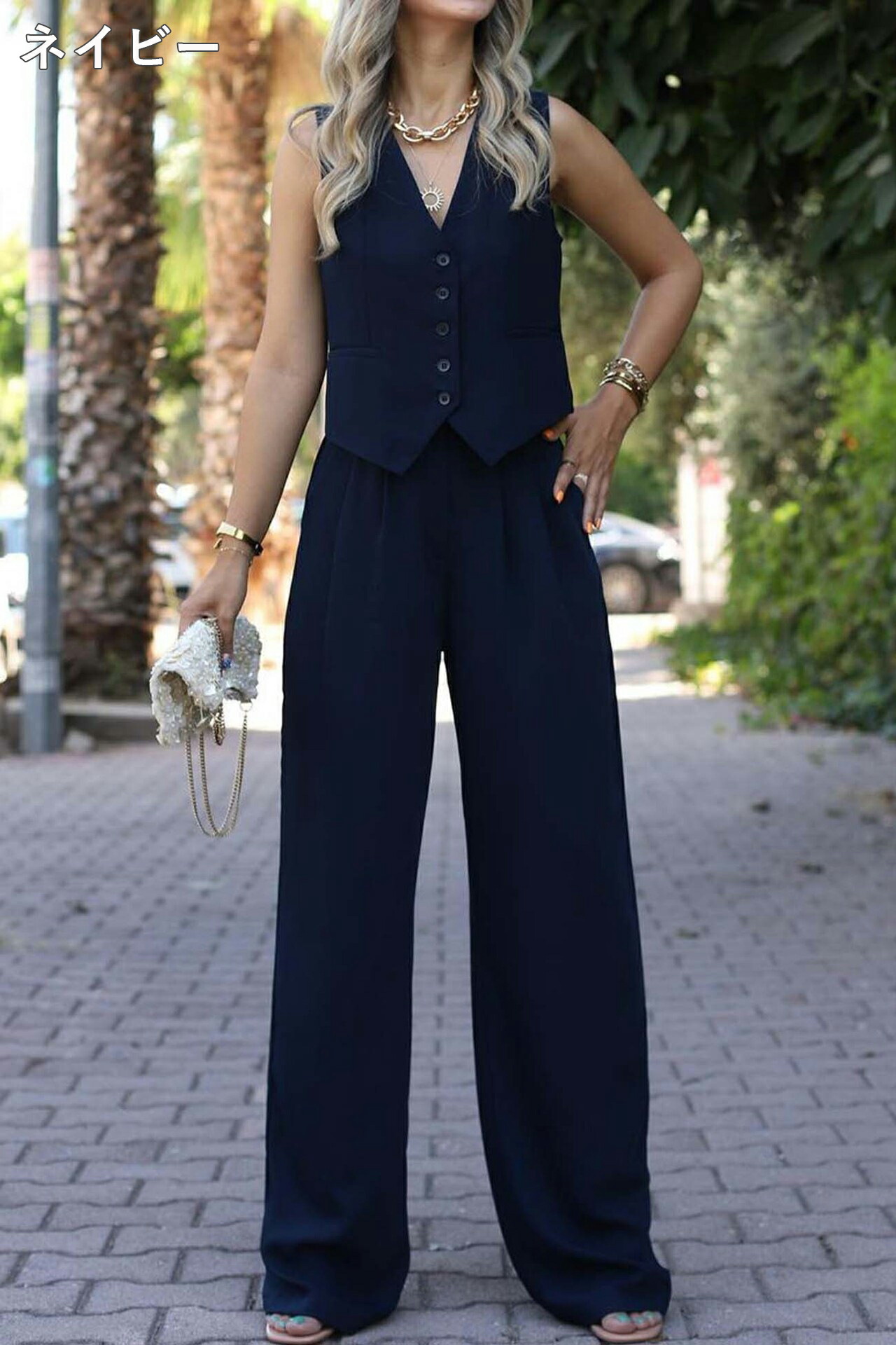 デニムパンツ ビジュー付き