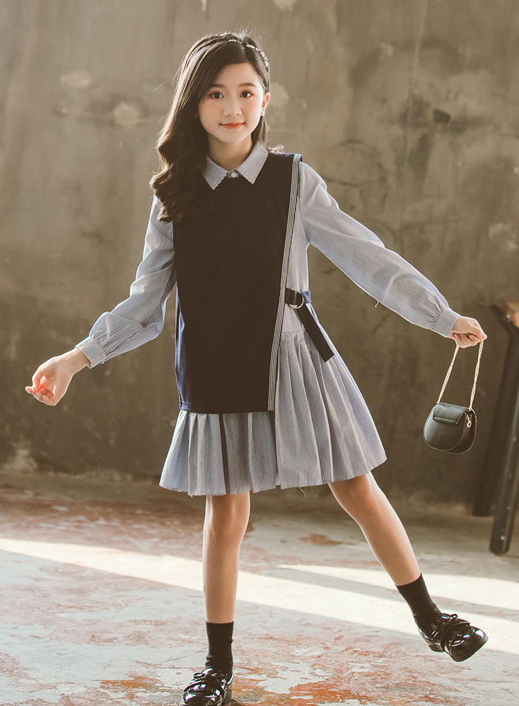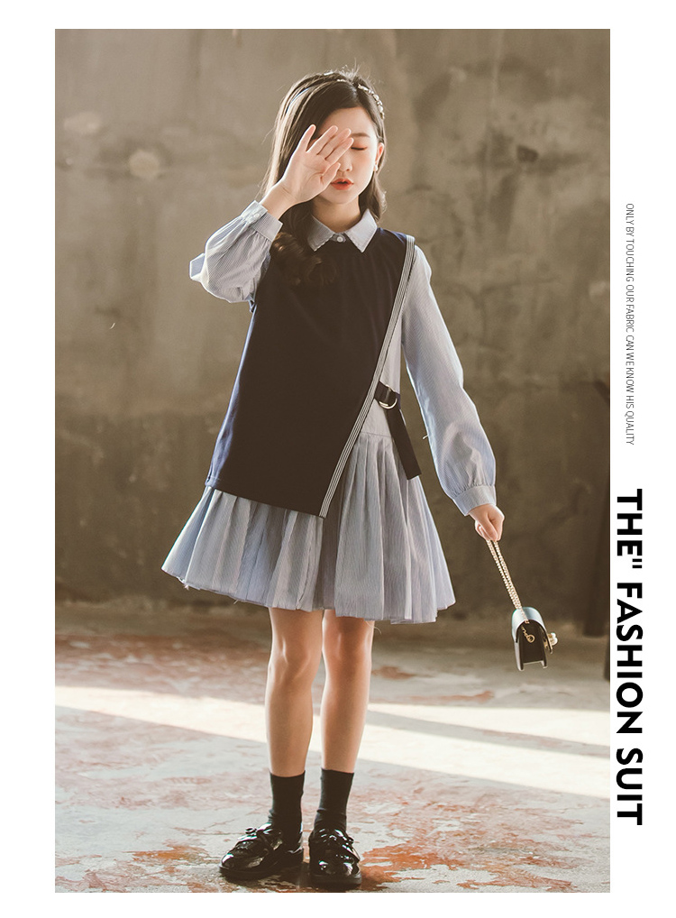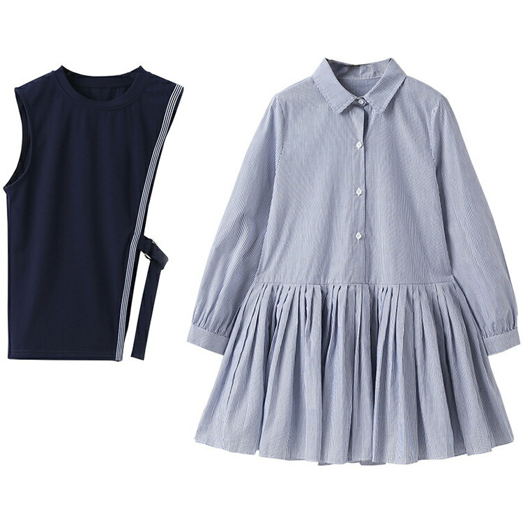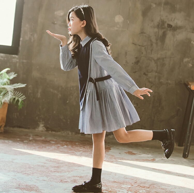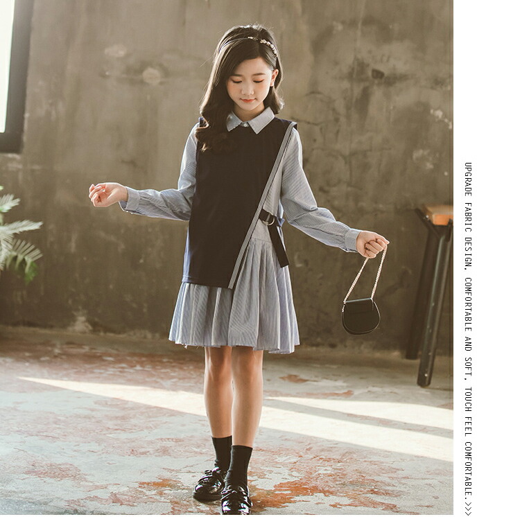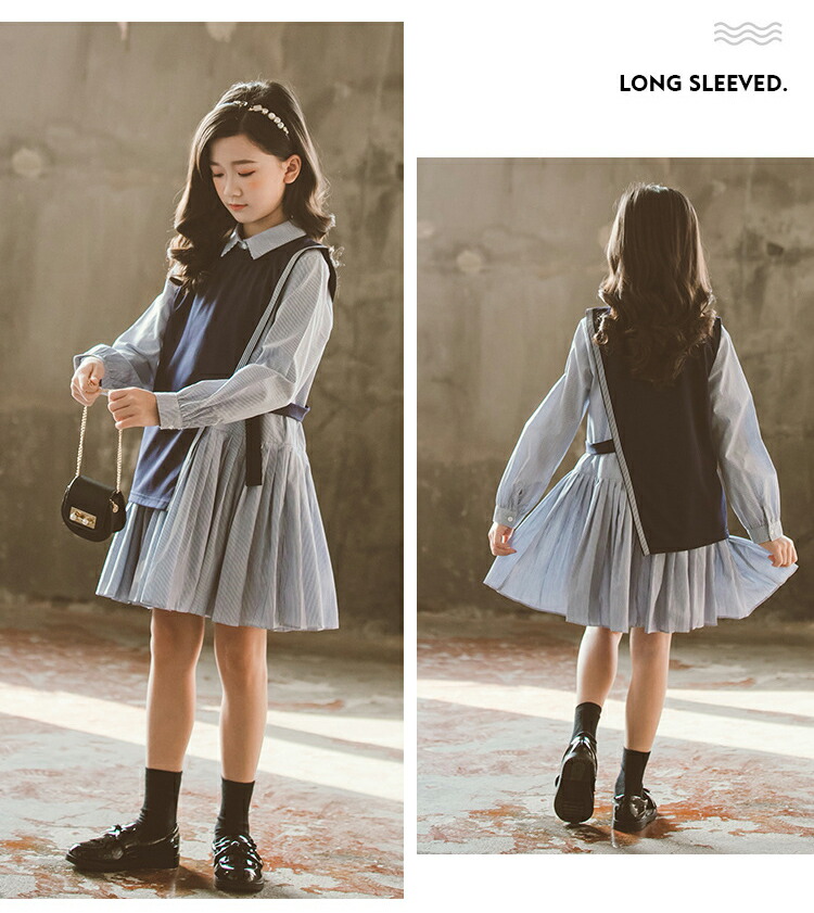 卒業式 スーツ 女の子 ピアノ発表会 フォーマルスーツ 縞柄 子供フォーマル 女の子 スーツ 入学式 卒業式 フォーマルスーツ ブラウス ベスト ネイビー ロングシャス 120 170