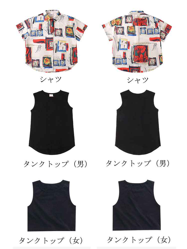 horizontal-key: 女子タンクトップ 男タンクトップ 半ズボン シャツ 長ズボン シャツ+半ズボン シャツ+長ズボン