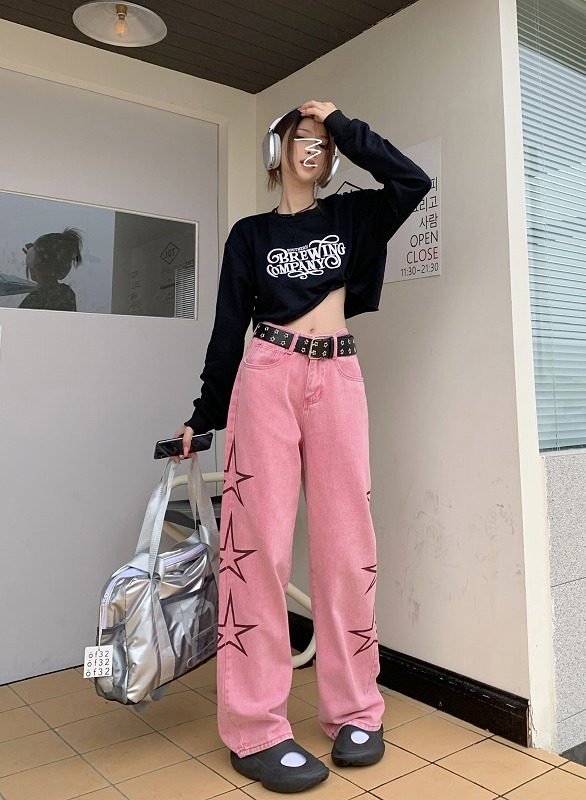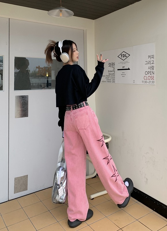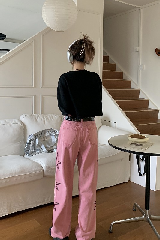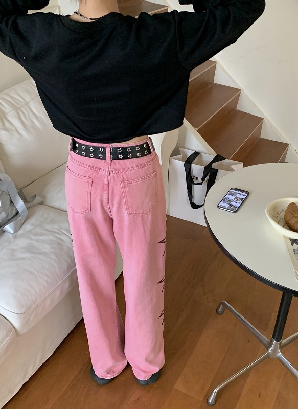 デニムパンツ ビジュー付き