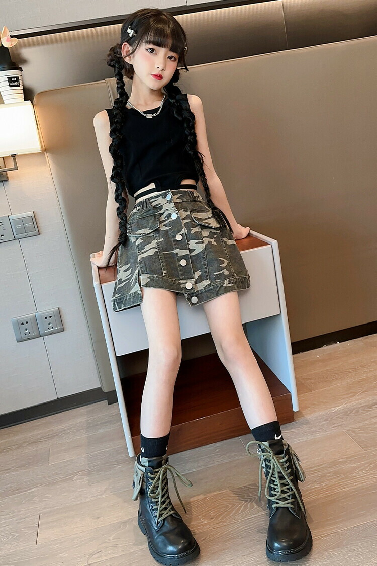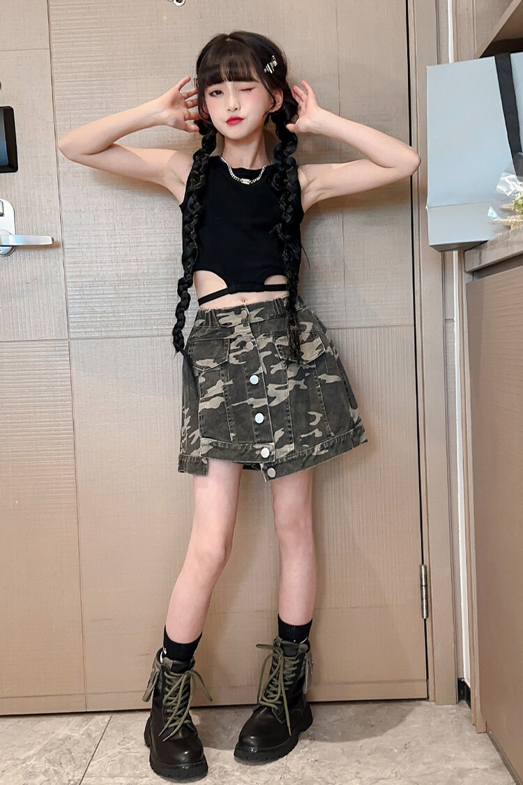 ダンス衣装 キッズ セットアップ へそ出し トップス キュロット ジャズダンス ガールズ 韓国 ヒップホップ hiphop 演出服 応援団 練習着 120-170cm