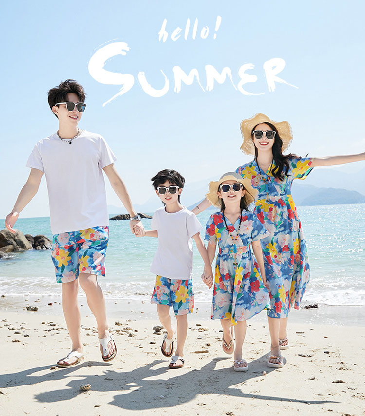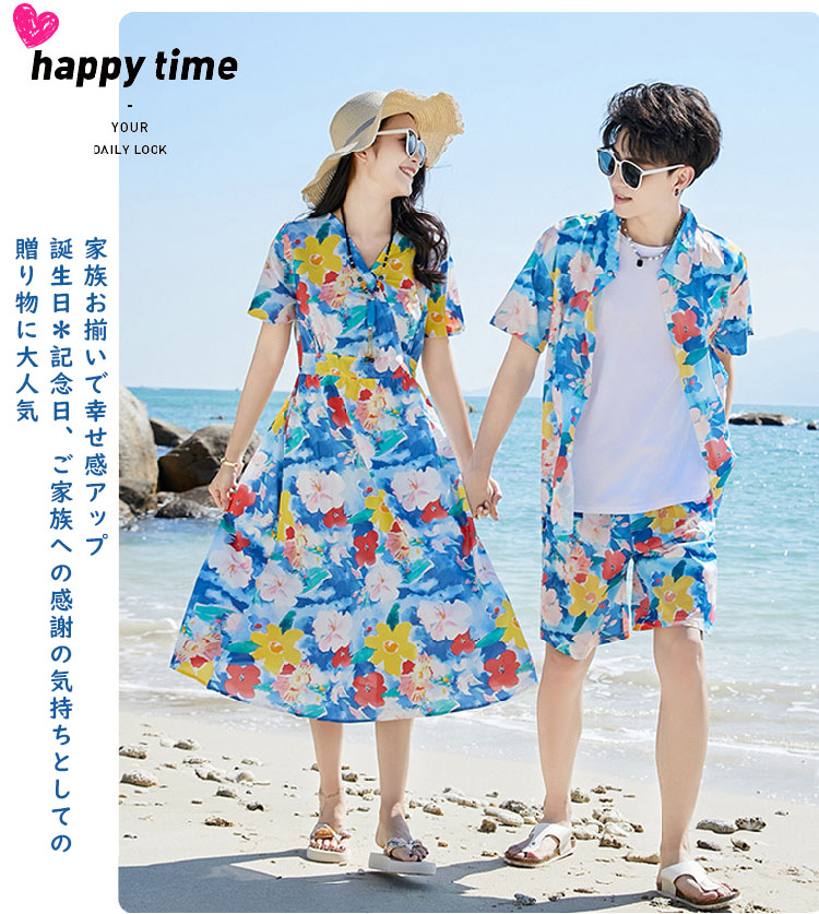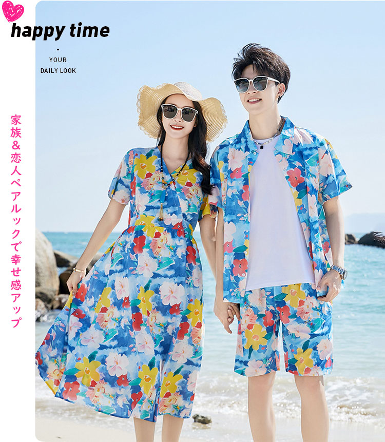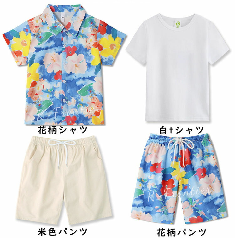 horizontal-key: (画像色)花柄シャツのみ (画像色)花柄ワンピース (画像色)花柄パンツのみ (画像色)白tシャツのみ (画像色)米色パンツのみ (画像色)花柄シャツ+花柄パンツ (画像色)花柄シャツ+米色パンツ