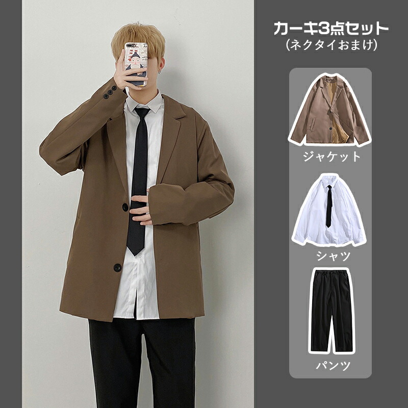 Key0: ブラック3点セット カーキ3点セット カーキ ジャケット ブラック ジャケット 黒パンツ