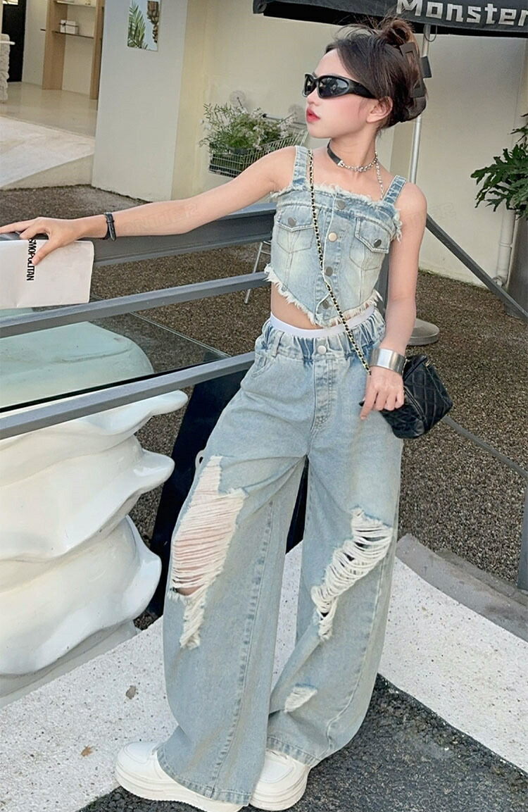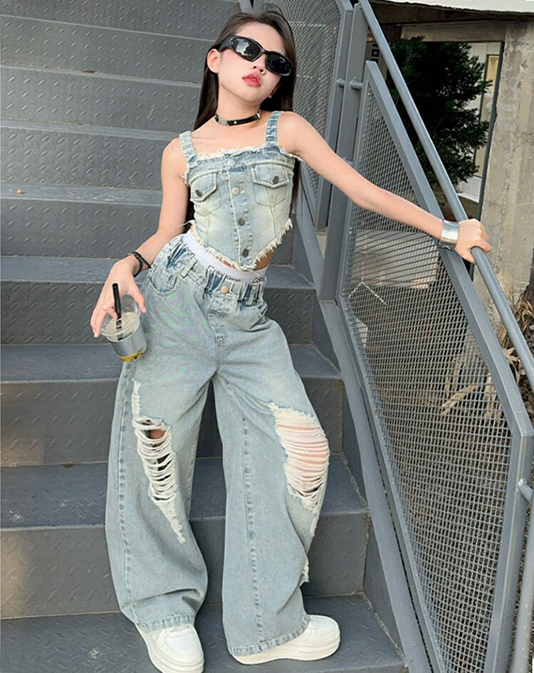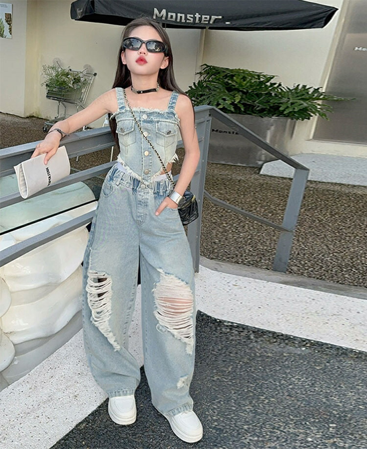 キッズダンス衣装 デニムセット ジャズダンス ガールズ 韓国 ヒップホップ hiphop 演出服 応援団 練習着 120-170cm