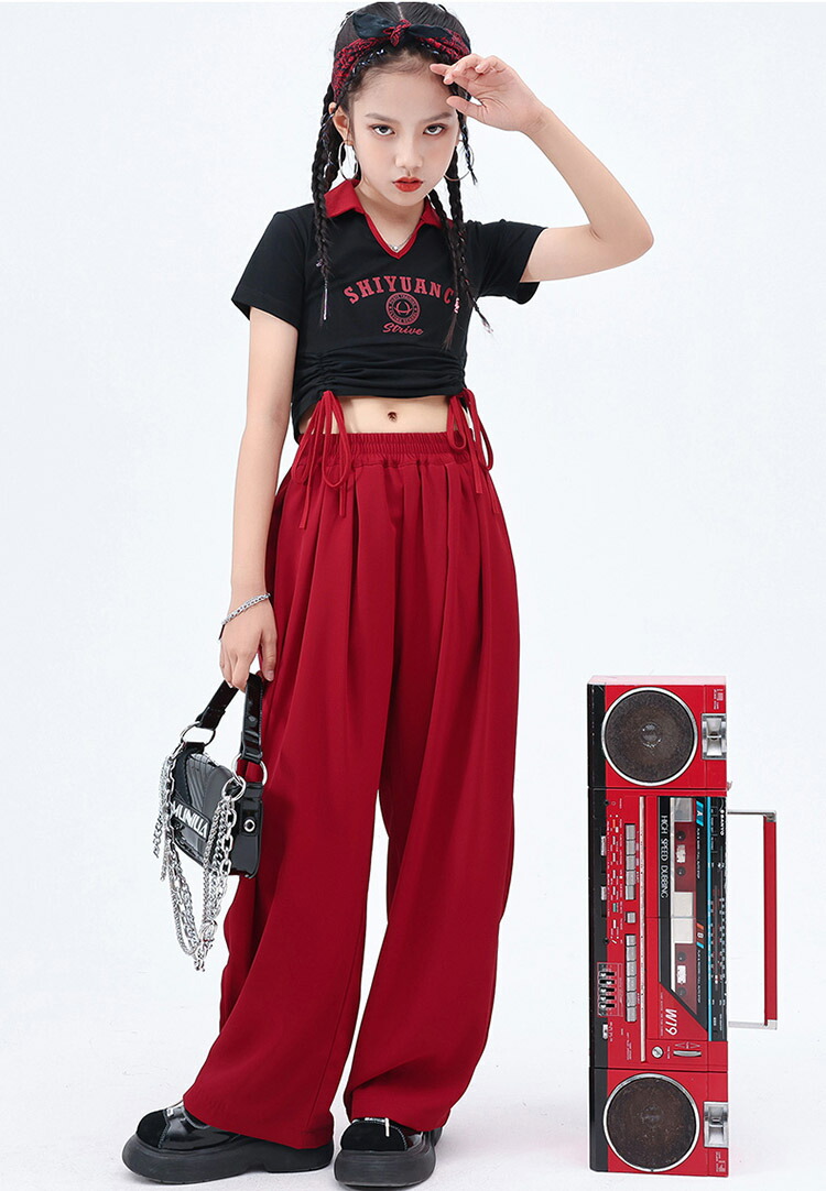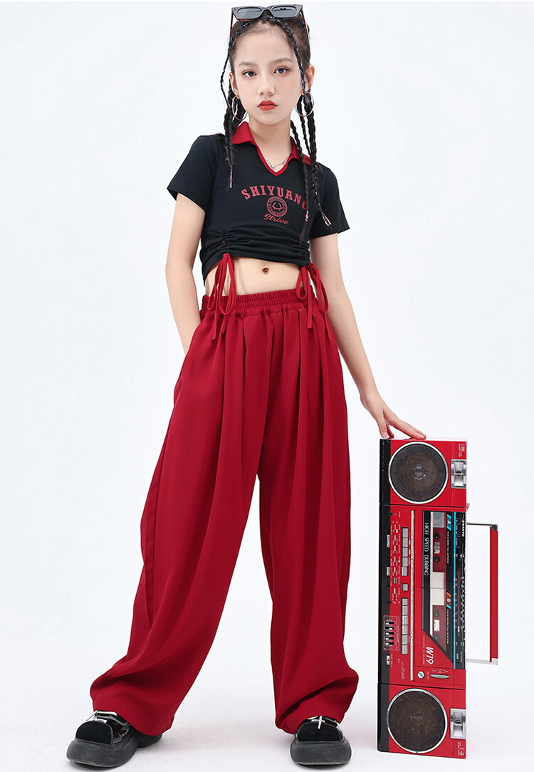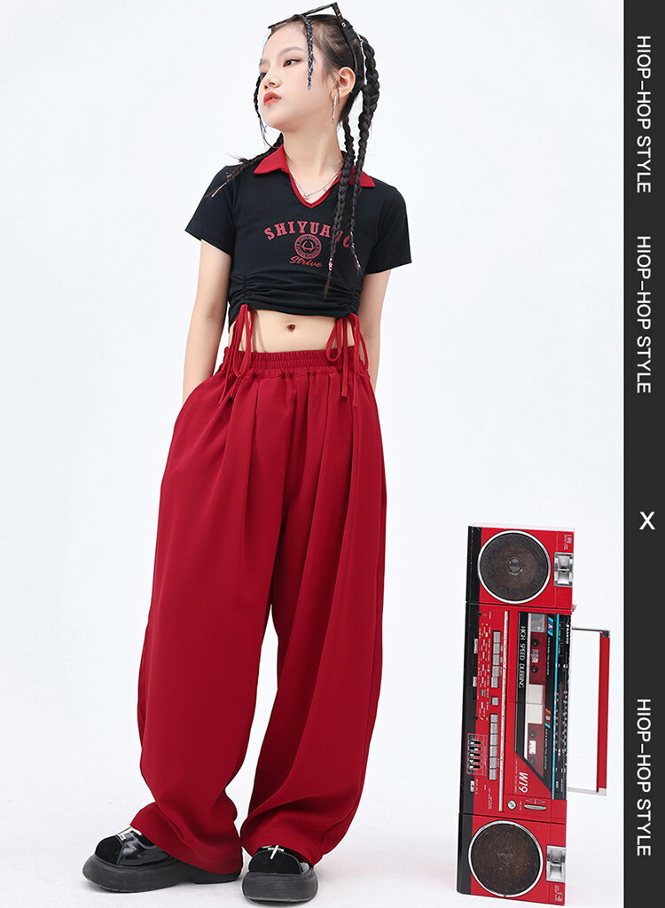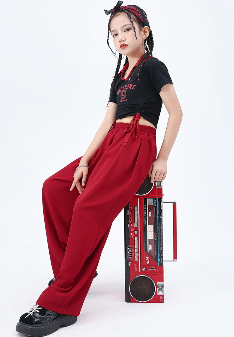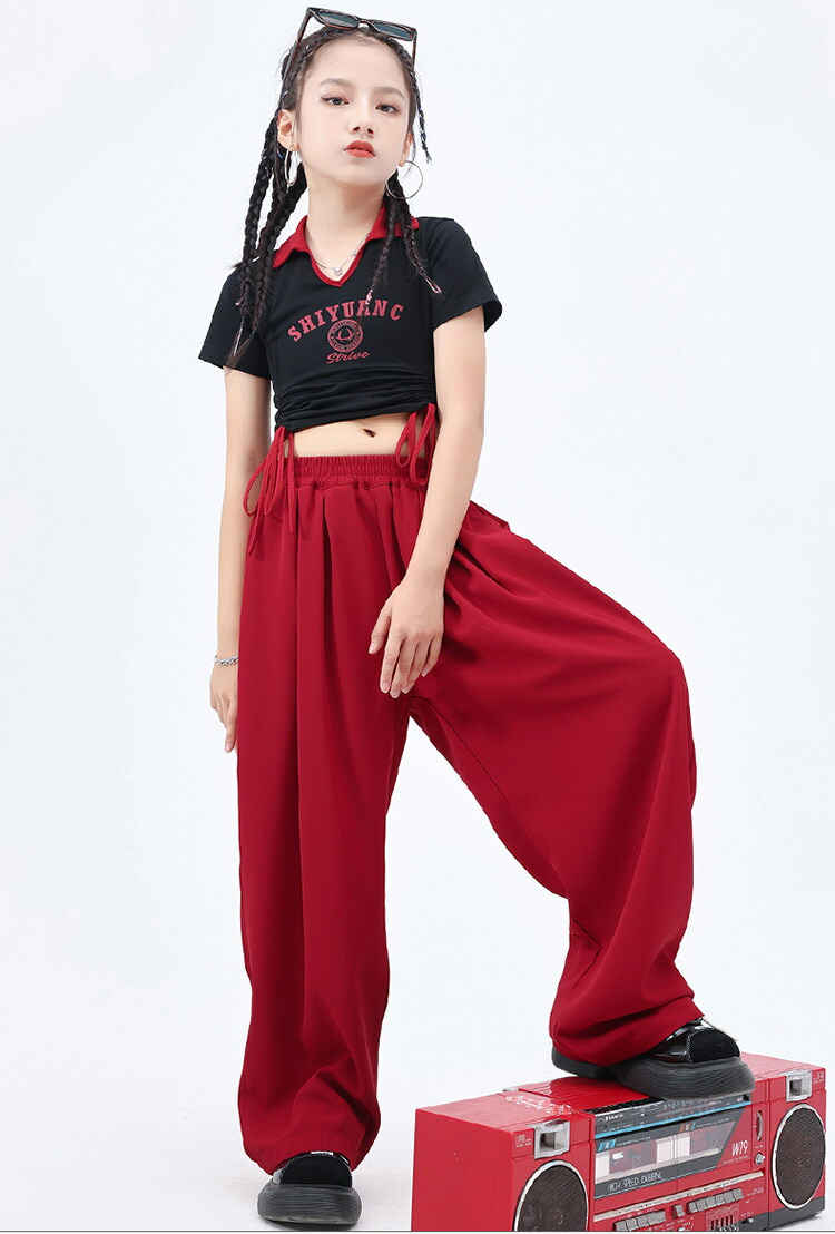 ダンス衣装 赤 黒 ヒップホップ キッ