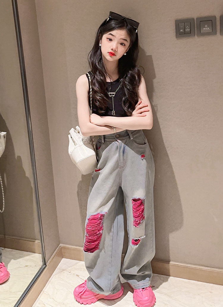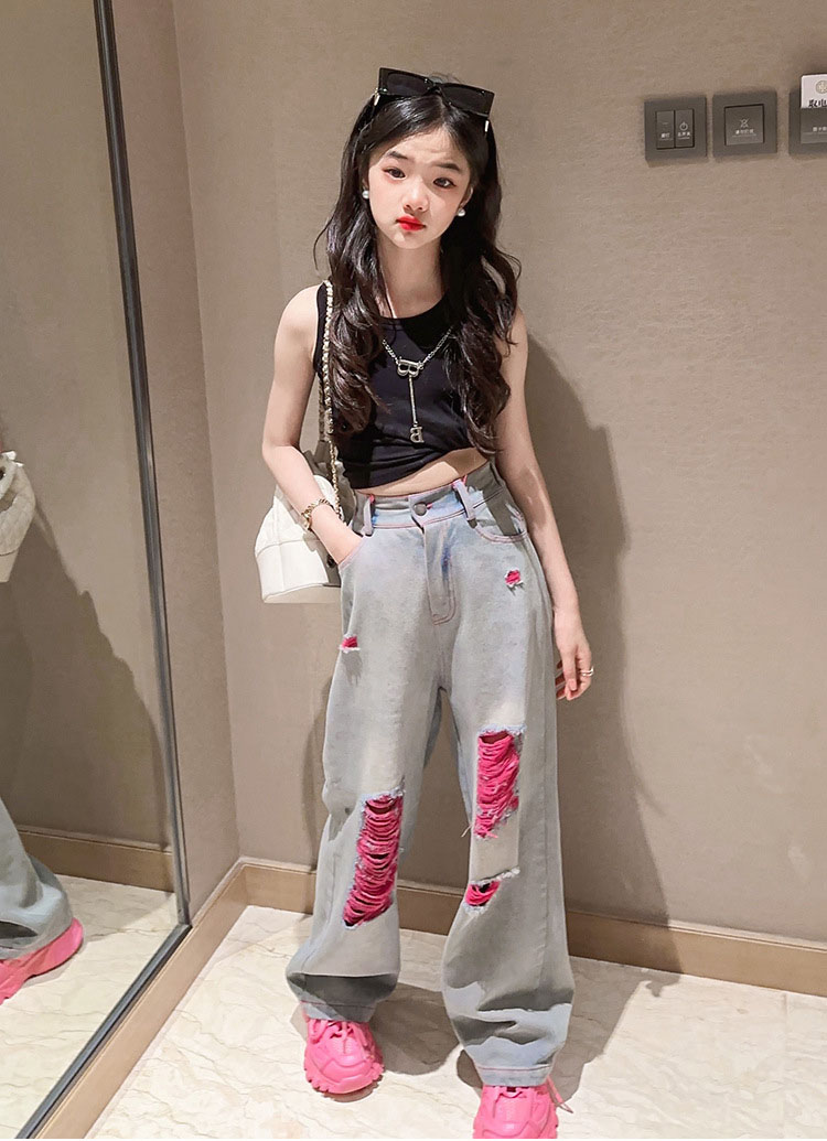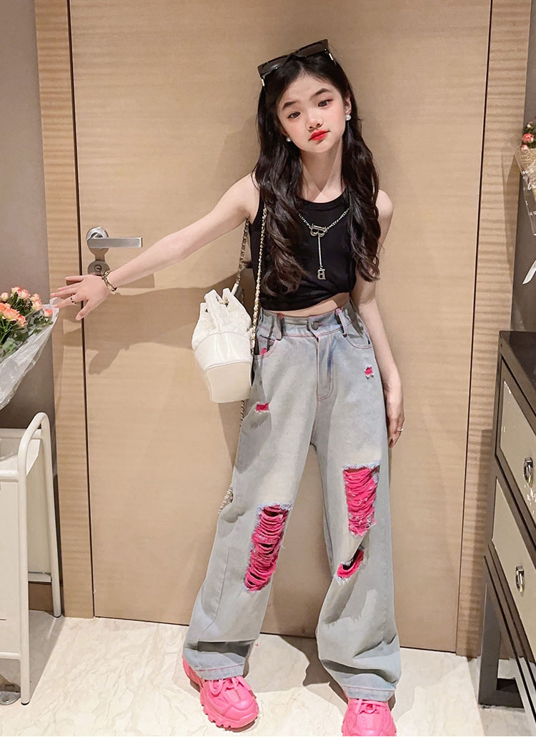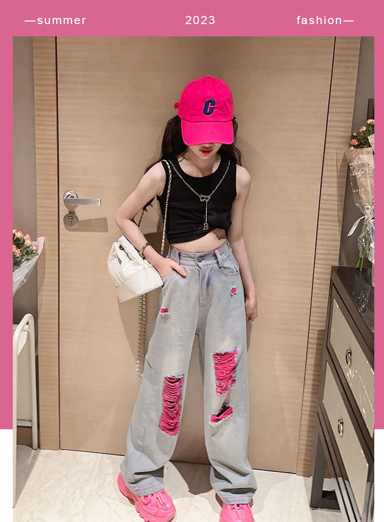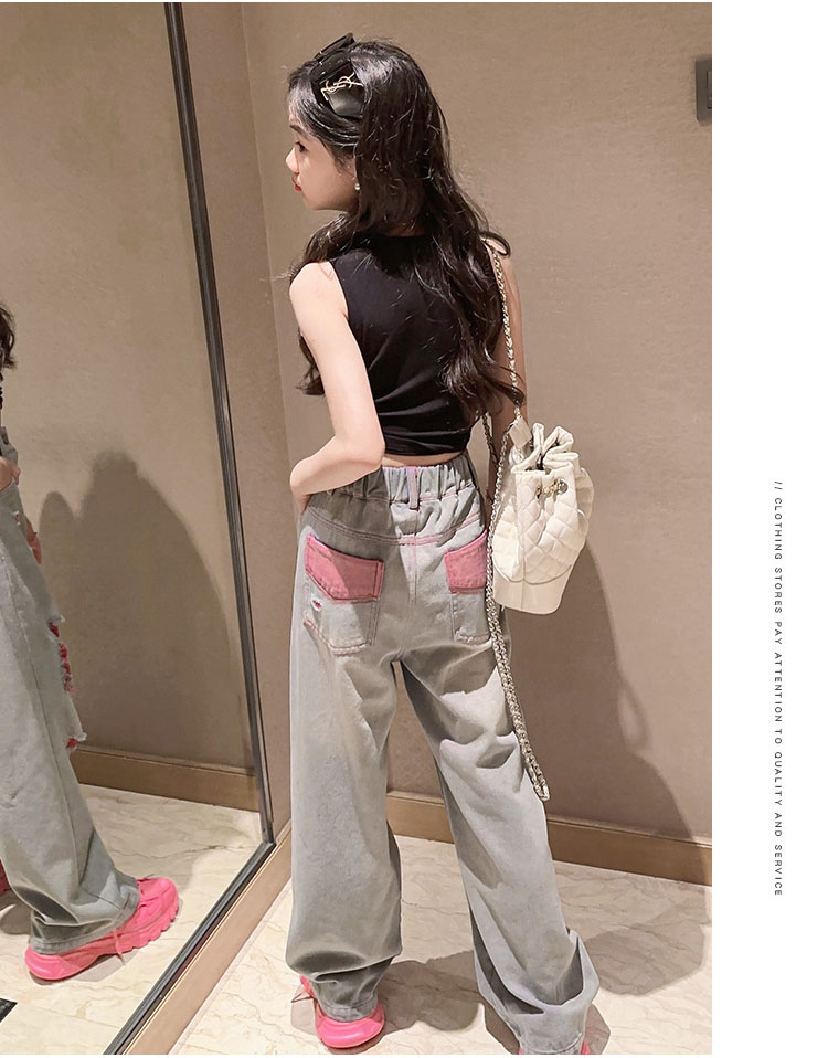 キッズ ダンス 衣装 セットアップ へそ出し トップス デニムパンツ ストレートパンツ k-pop HIPHOP ジャズダンス ヒップホップ 110 120 130 140 150 160 170
