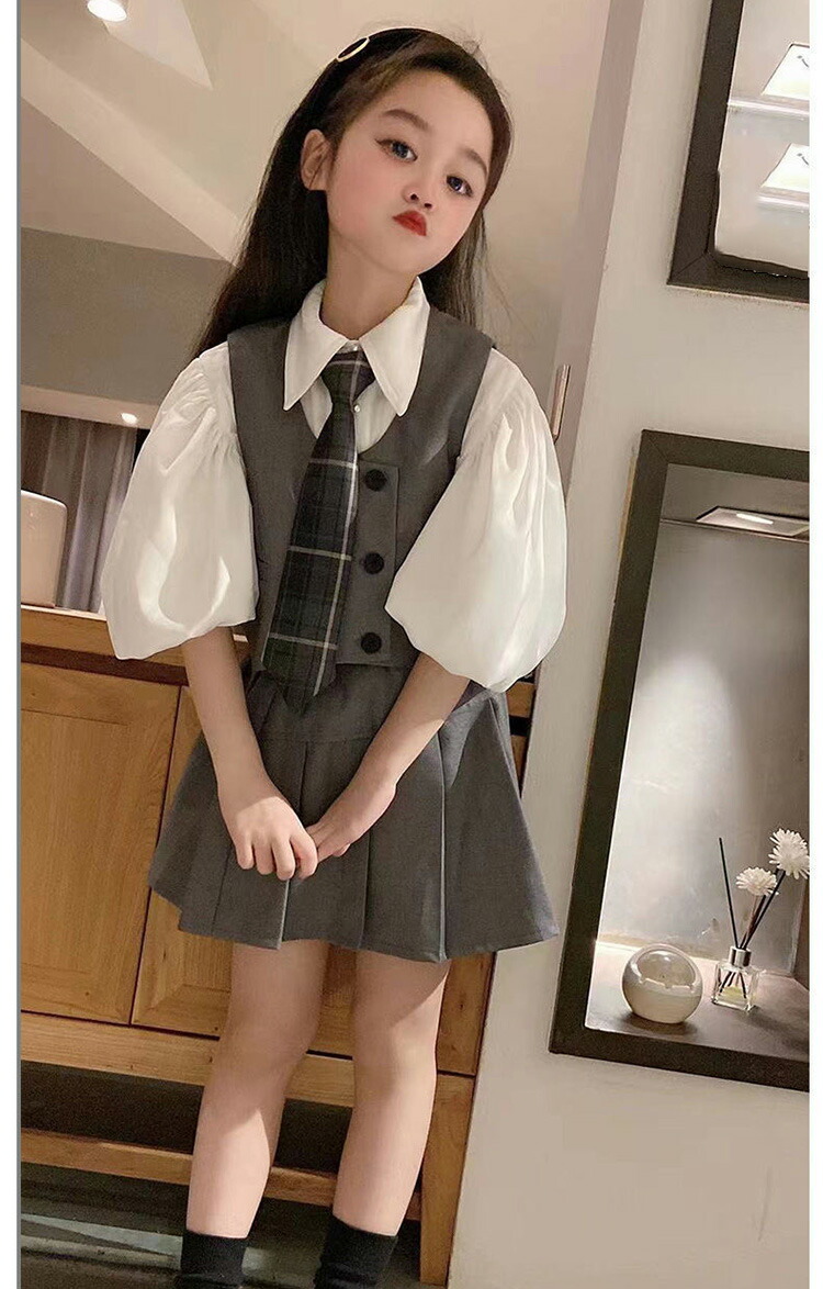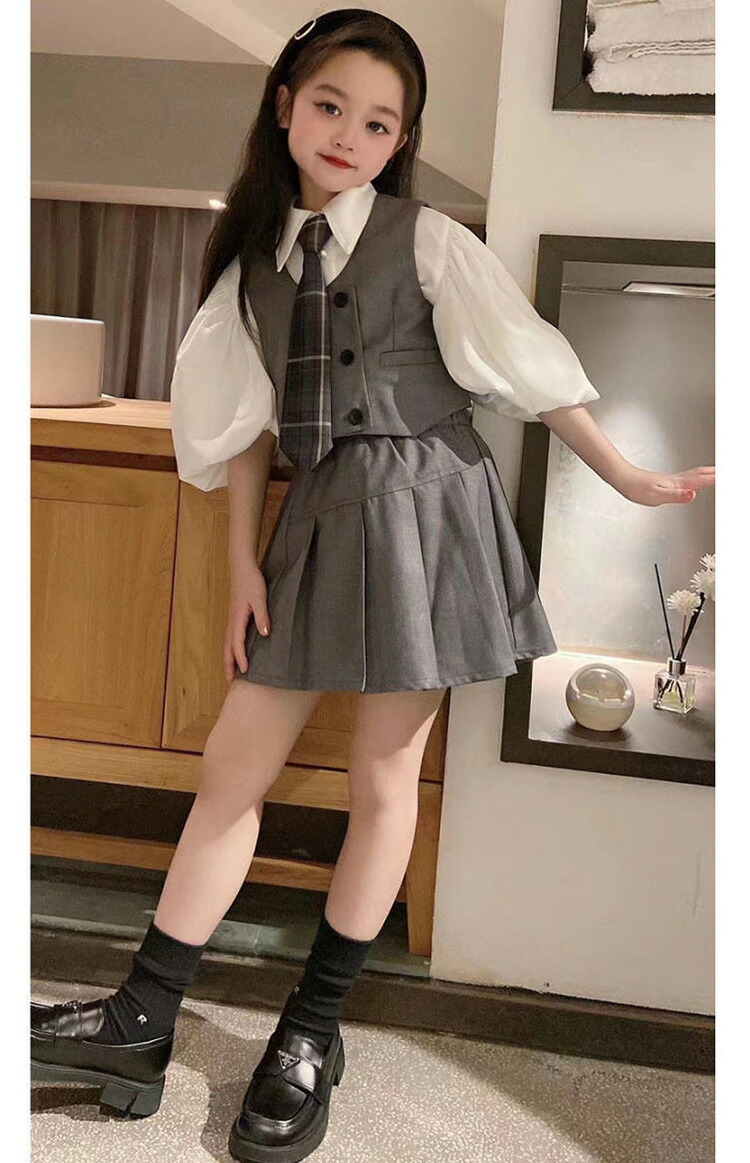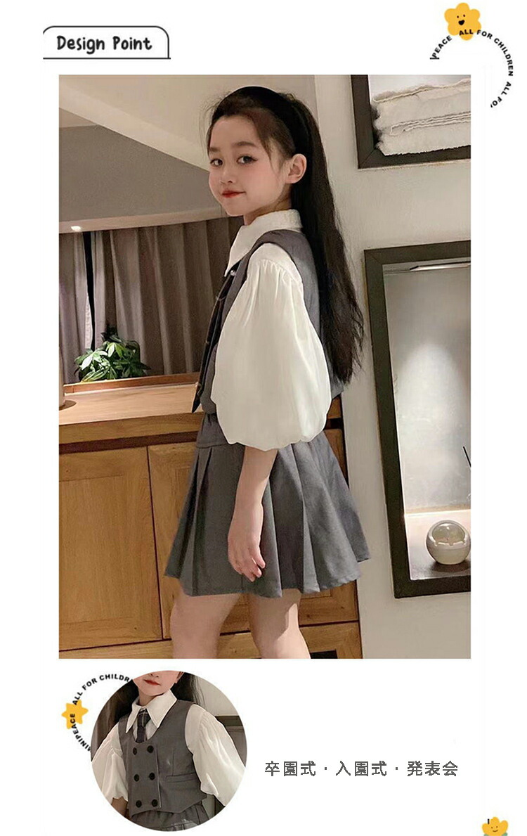 ピアノ発表会 フォーマル ブラウス ネクタイ スカート ベスト 子供服 ジュニア 160 150 140 130 120 110 100 発表会 結婚式 演奏会 可愛い 制服 卒業式 スーツ 女の子