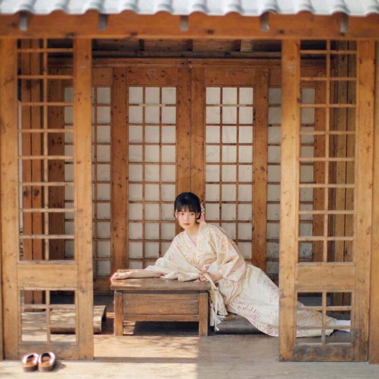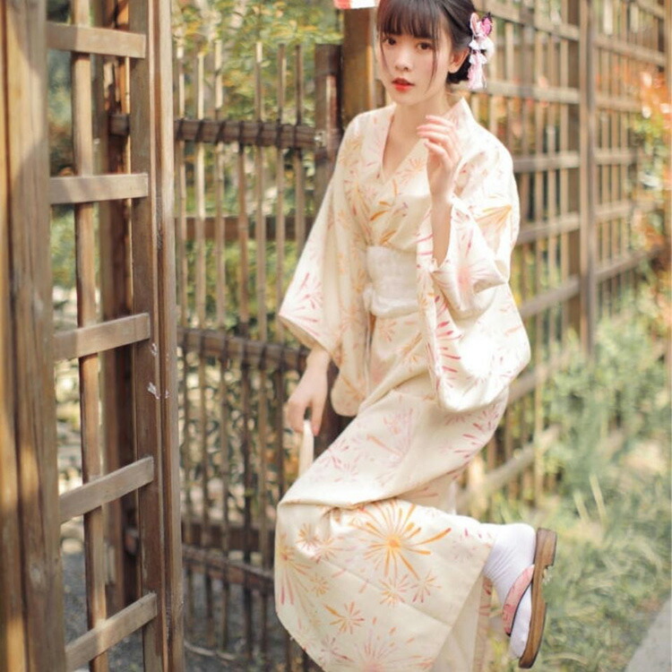 horizontal-key: 浴衣+簡易ベージュ帯+帯飾り 浴衣+画像色リボン帯+帯飾り