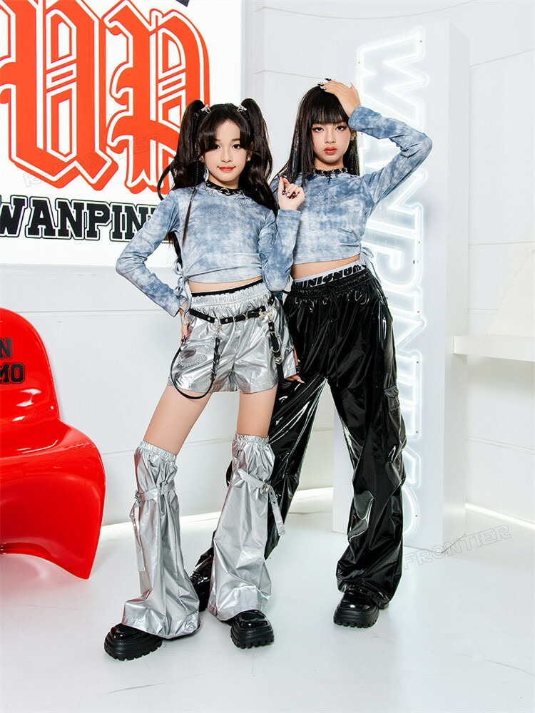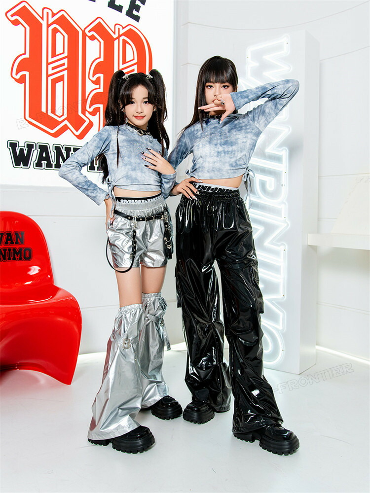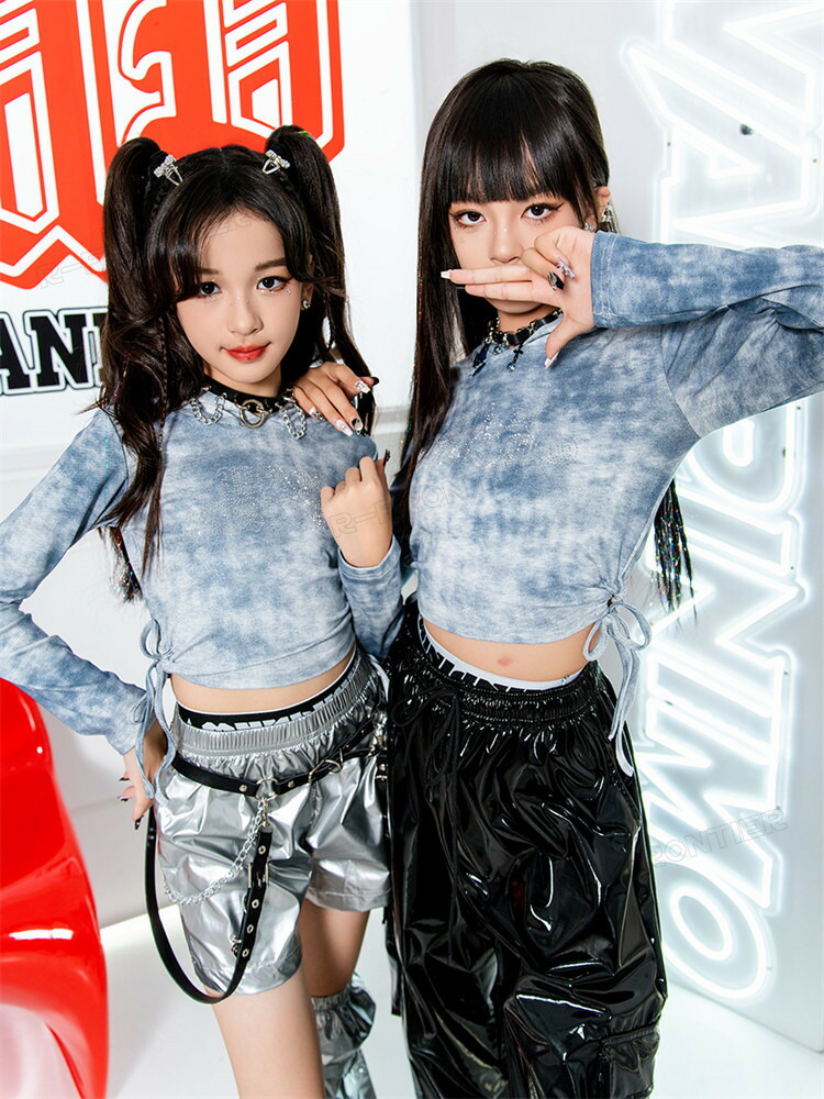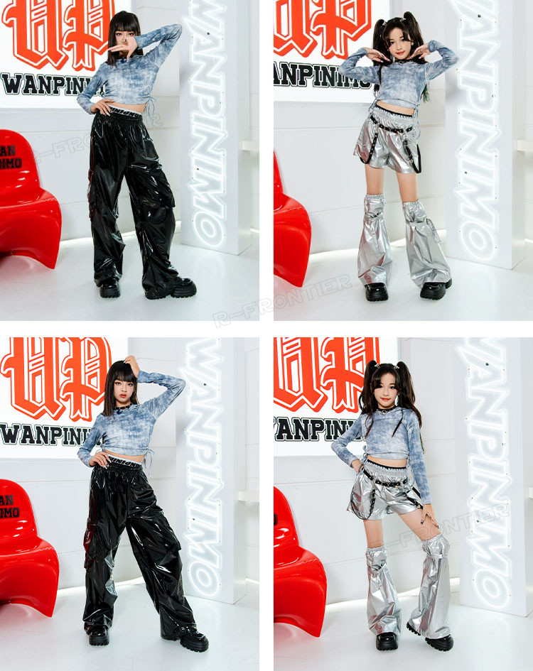 キッズ ダンス衣装 セットアップ 女の子 へそ出し トップス 黒シャツ ヒップホップ 韓国 k-pop衣装 かっこいい 演出服 ジュニア 子供 HIPHOP イベント 発表会 演出服 応援 110 1