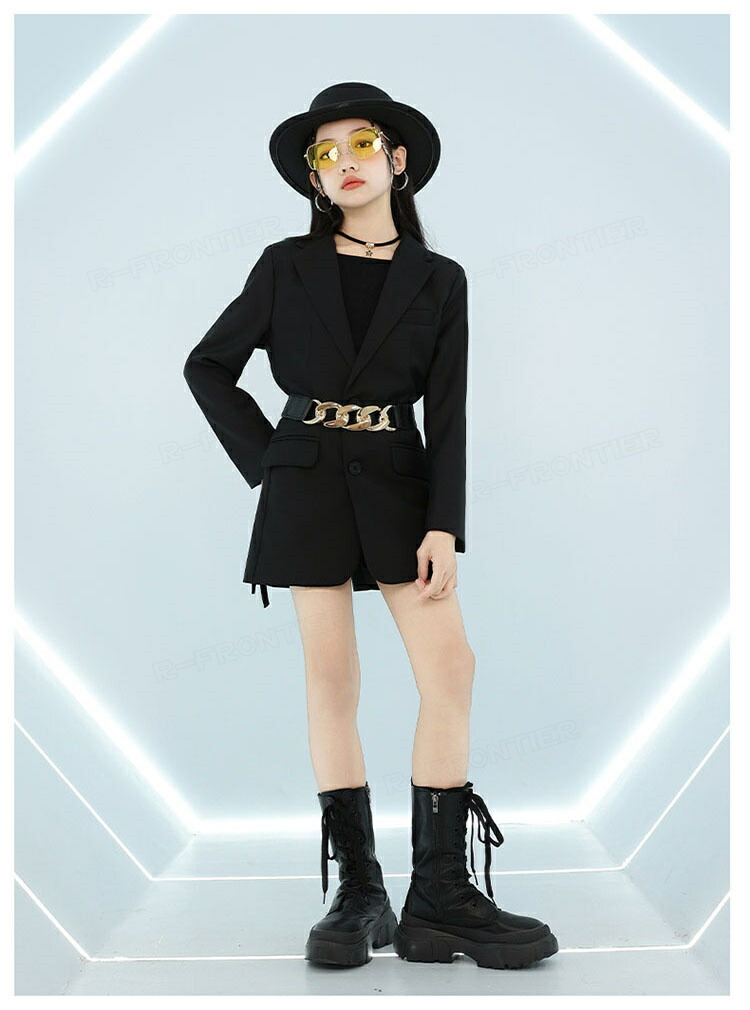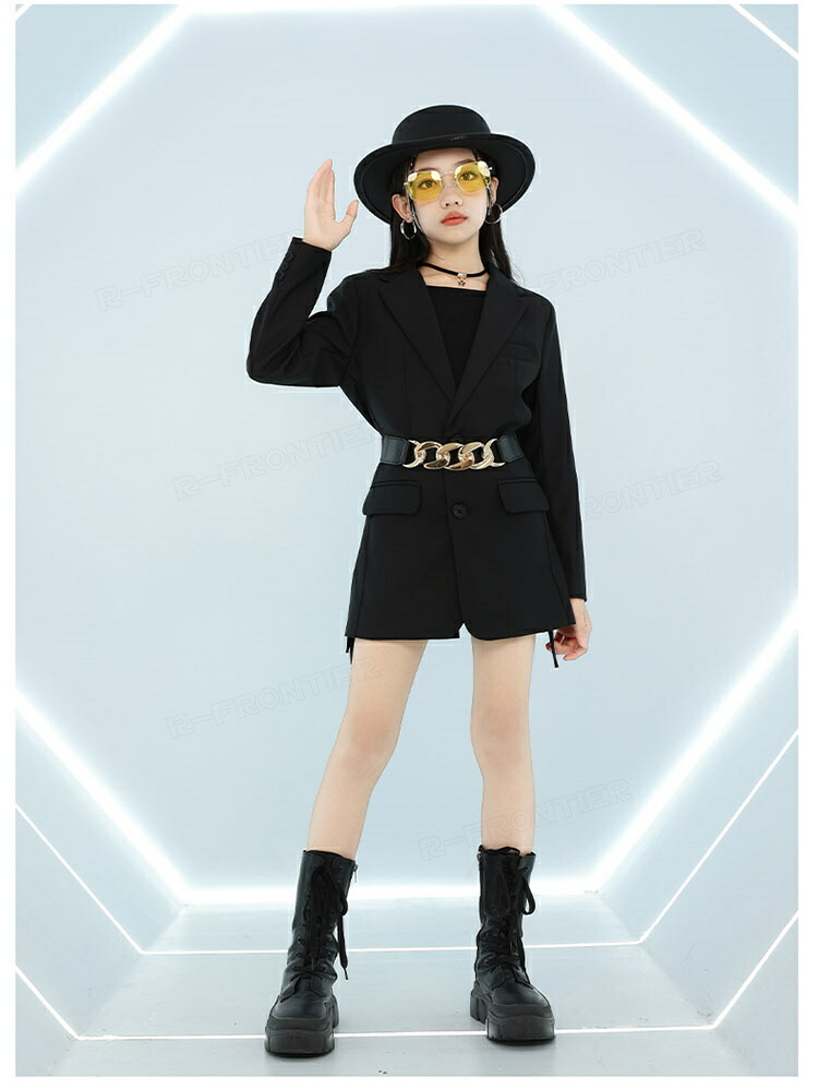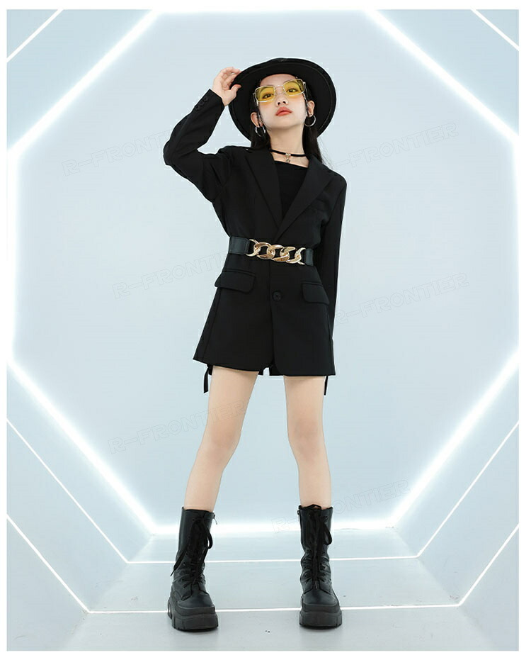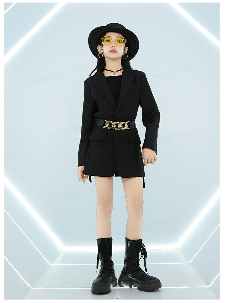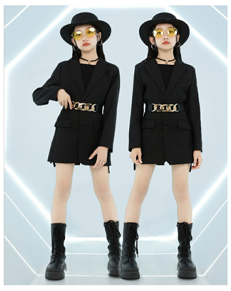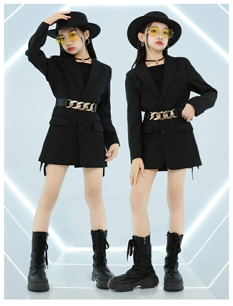ダンス トップス へそ出し キッズ 女の子 かっこいい 蝶トップス 黒スカート ショート丈tシャツ 長袖 ヒップホップ 韓国 k-pop衣装 ジャズダンス 団体 演出服 応援団 イベント110-180