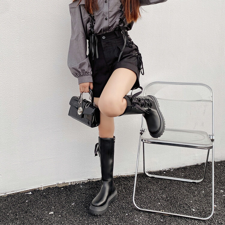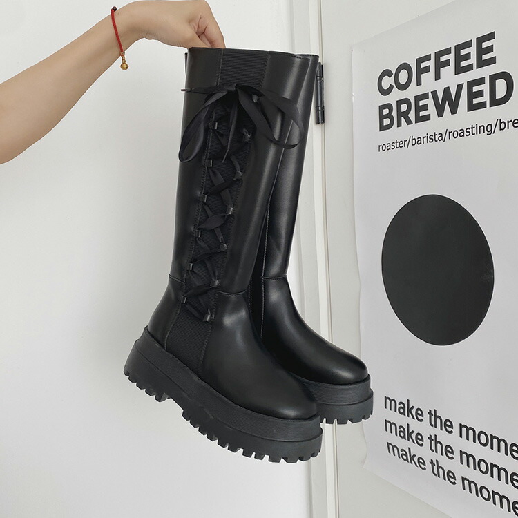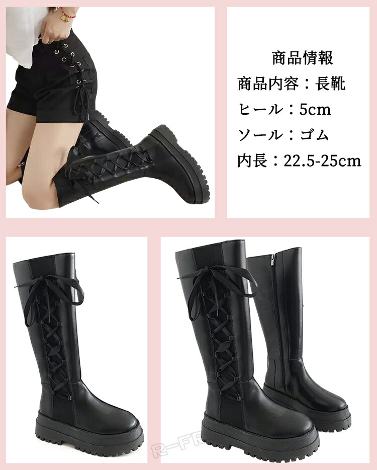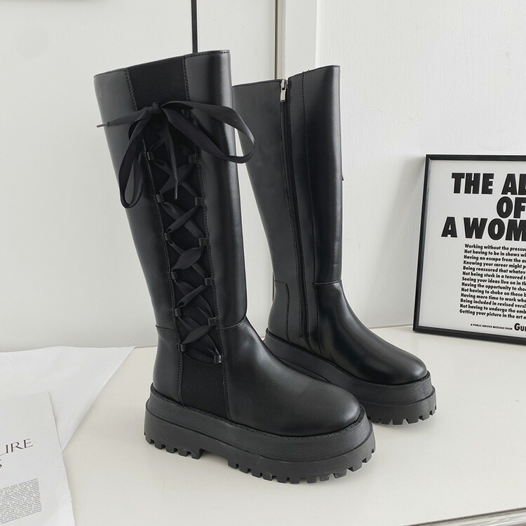 レディース スニーカーブーツ ダンスブーツ チーム衣装 ロング 黒 サイドジップ 編み上げ ダンスブーツ ロングブーツ ダンスシューズ コスプレ靴 袴ブーツ スノーブーツ 22.5-25cm