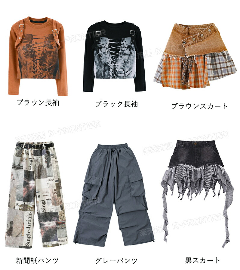 horizontal-key: ブラウン長袖+ブラウンスカート ブラウン長袖+新聞紙パンツ ブラック長袖+グレーパンツ ブラック長袖+黒スカート ブラック長袖 ブラウン長袖 黒スカート ブラウンスカート グレーパンツ 新聞紙パンツ