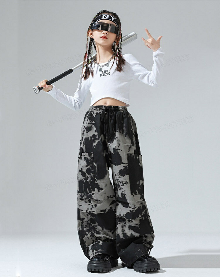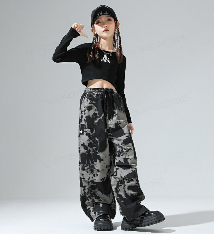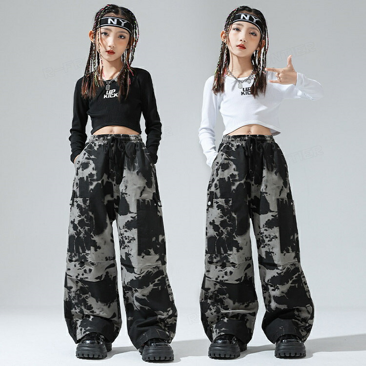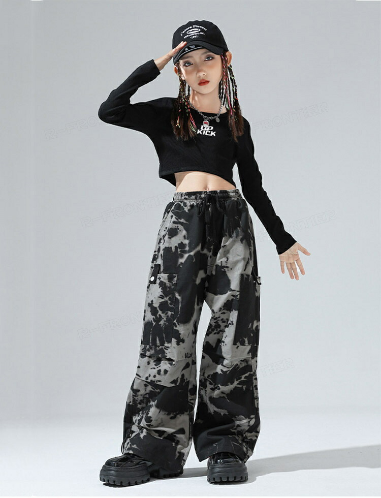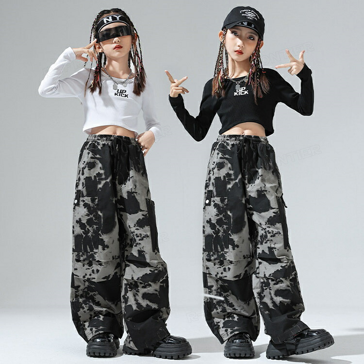 ダンス衣装 キッズ ヒップホップ 女の子 へそ出しトップス パンツ 長ズボン 子供 女の子 ステージ衣装 団体服 発表会 演出服 韓国
