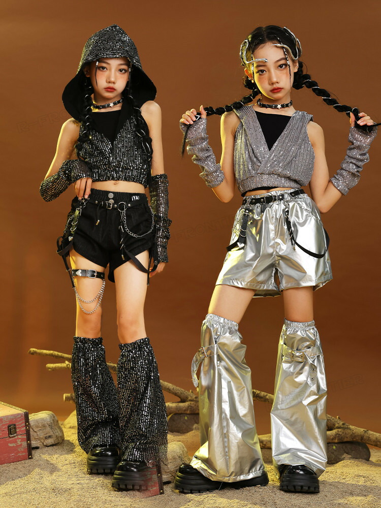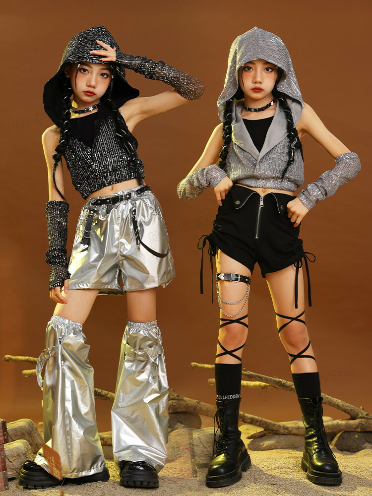 キッズ ダンス衣装 シルバー メタリッ