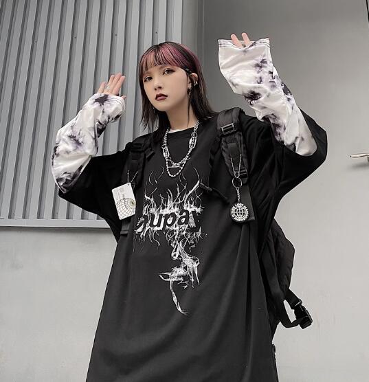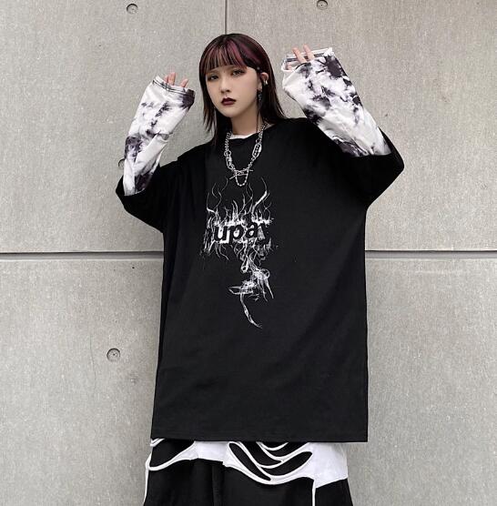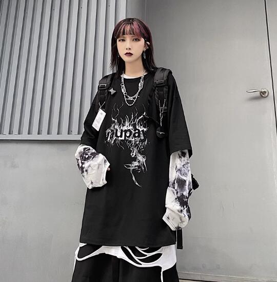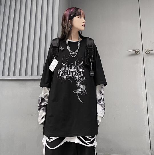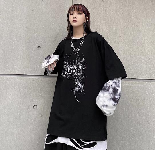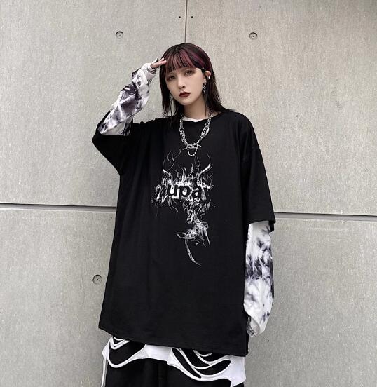 ♪M-XL展開♪重ね着風ロゴTシャツ長