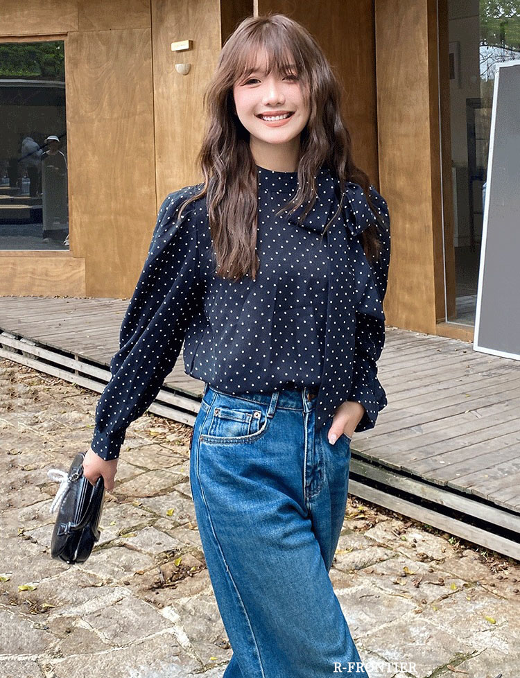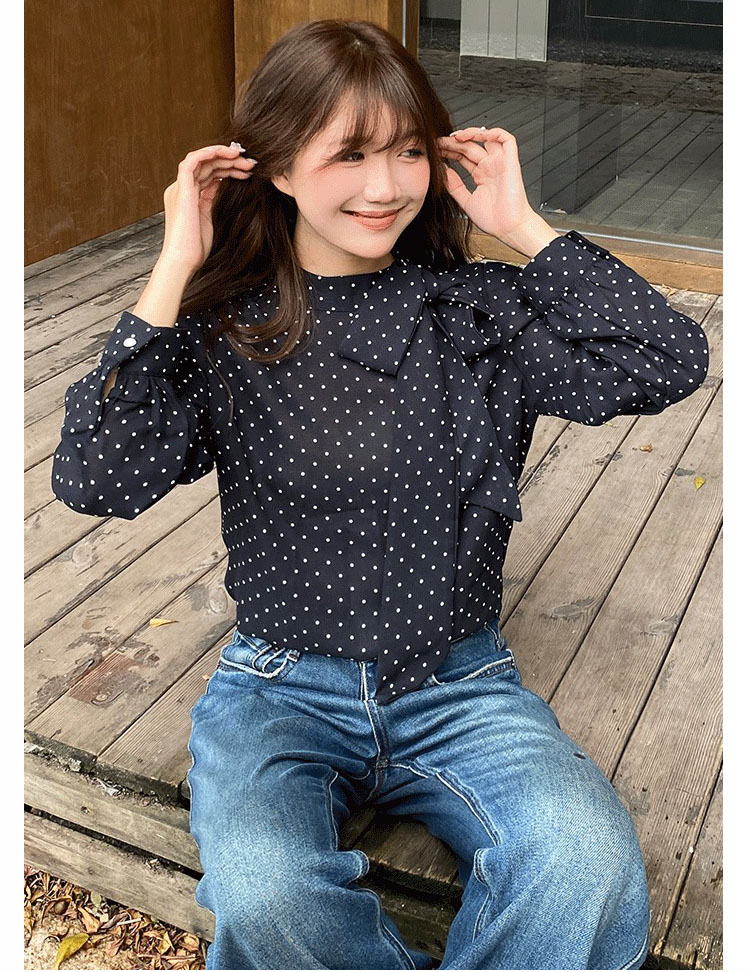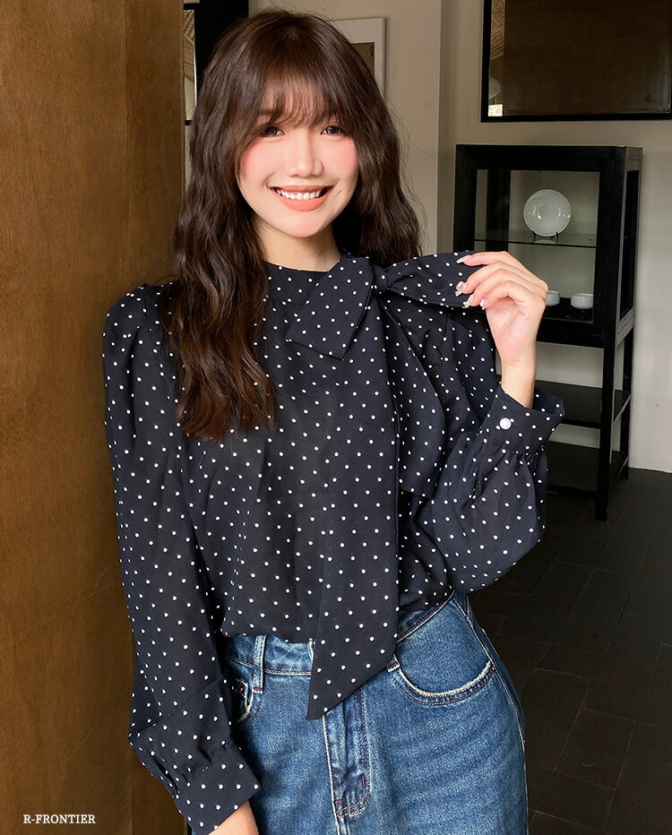シアースリーブ ドッキングシャツ ボウタイシャツブラウス