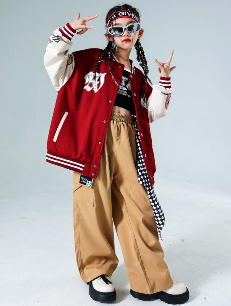 キッズダンス衣装 赤 セットアップ へそ出し トップス 女の子 レザージャケット かっこいい 黒 ダンス パンツ 赤 ワイドパンツ ヒップホップ 韓国 k-pop衣装 演出服 イベント 110-180