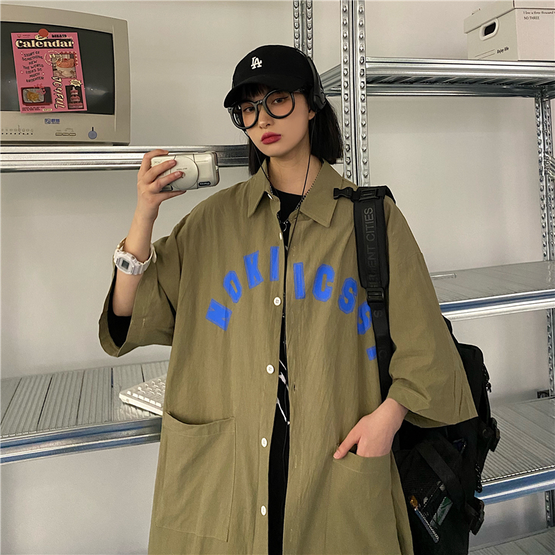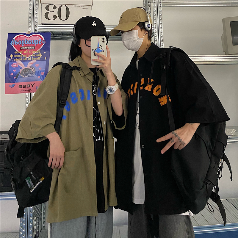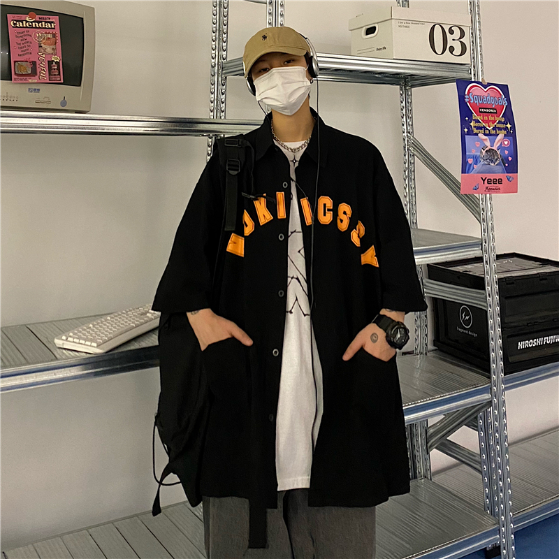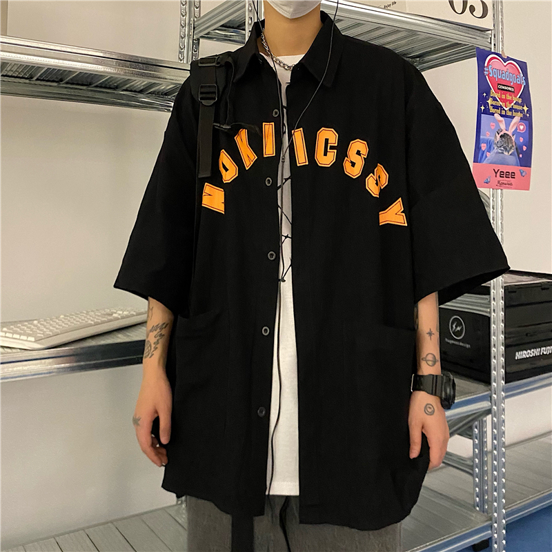 ブラウス シャツ 長袖 切り替え バイカラー 配色 体型カバー ユニセックス 男女兼用 原宿系ファッション 韓国風ダンス 衣装 ヒップホップ HIPHOP 個性 奇抜 かわいい 青文字系 トップス レ