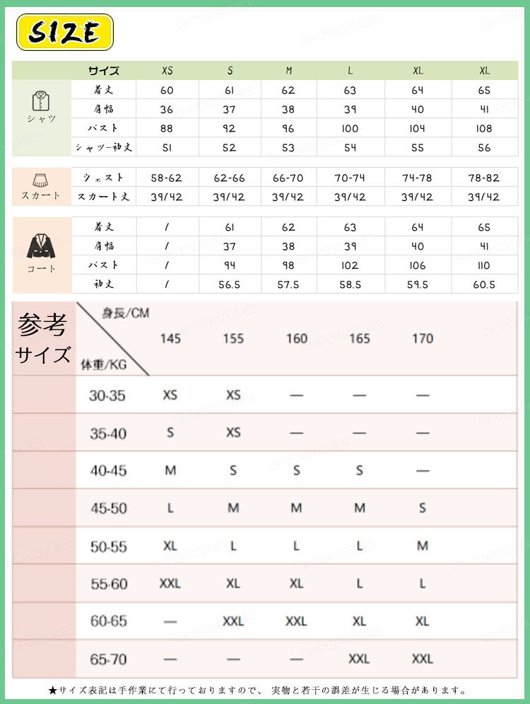vertical-key: XS(コートのみ:サイズS) S M L XL XXL