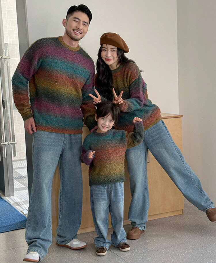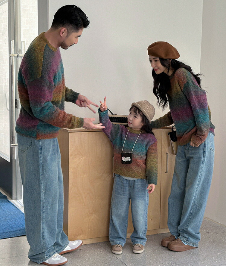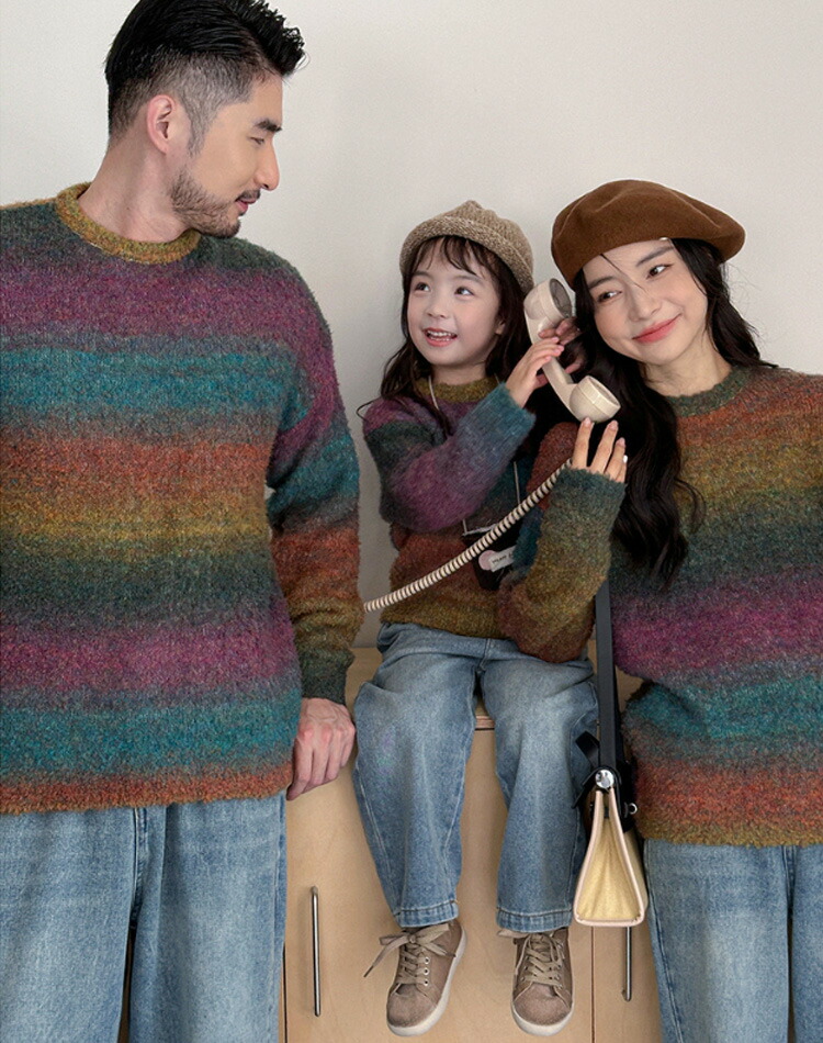 家族揃い キッズ 親子服 カップル 裏起毛トップス カジュアル 家族 お揃い服 記念日 写真撮影 旅行 プレゼント ニット セーター 黒白 ギフト