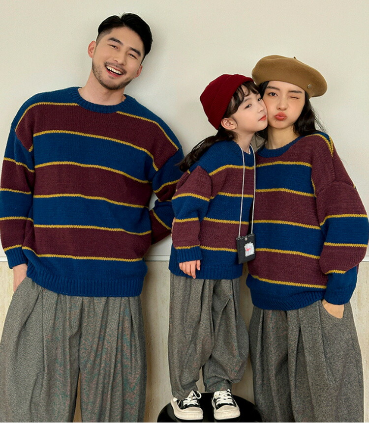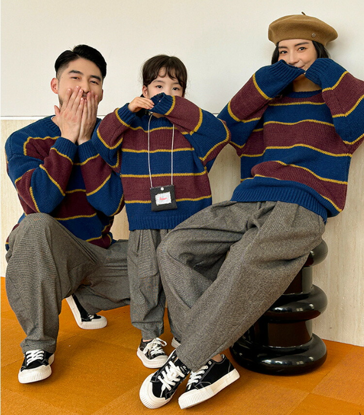 家族揃い キッズ 親子服 カップル 裏起毛ズボン カジュアル 家族 お揃い服 記念日 写真撮影 旅行 プレゼント ニット セーター 黒白 ギフト