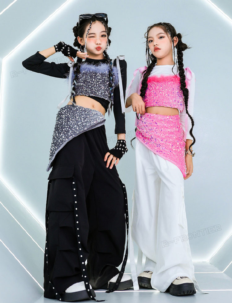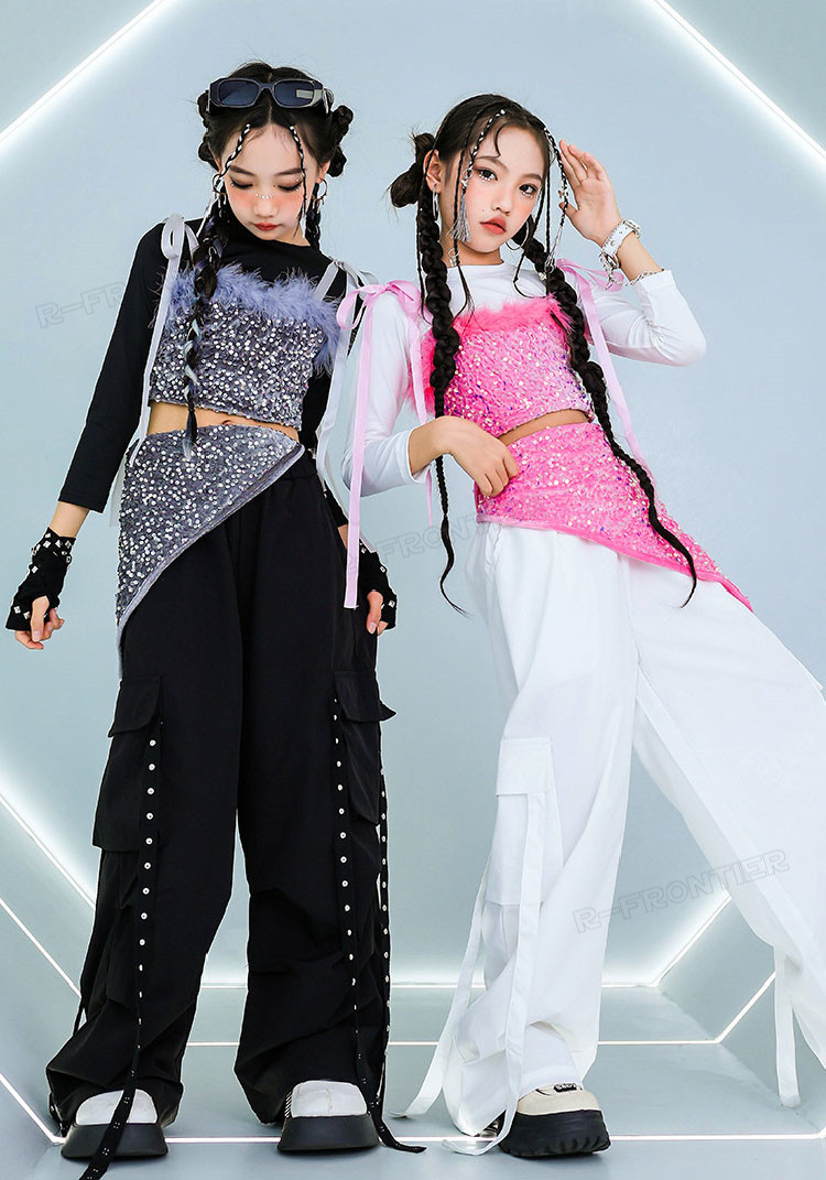 ジャズダンス 衣装 ダンス衣装 キッズ ヒップホップ k-pop 韓国 k-pop 衣装 グレー スーツ ダンス スーツ 大きめ セットアップ トップス パンツ 120 130 140 150 160