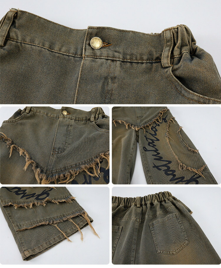 デニムパンツ ビジュー付き