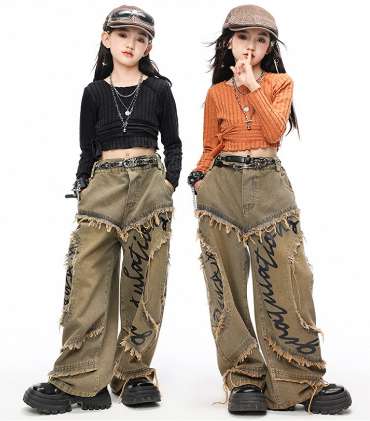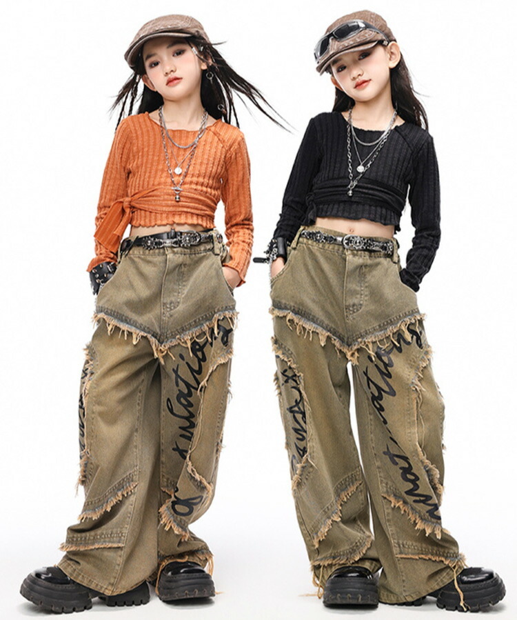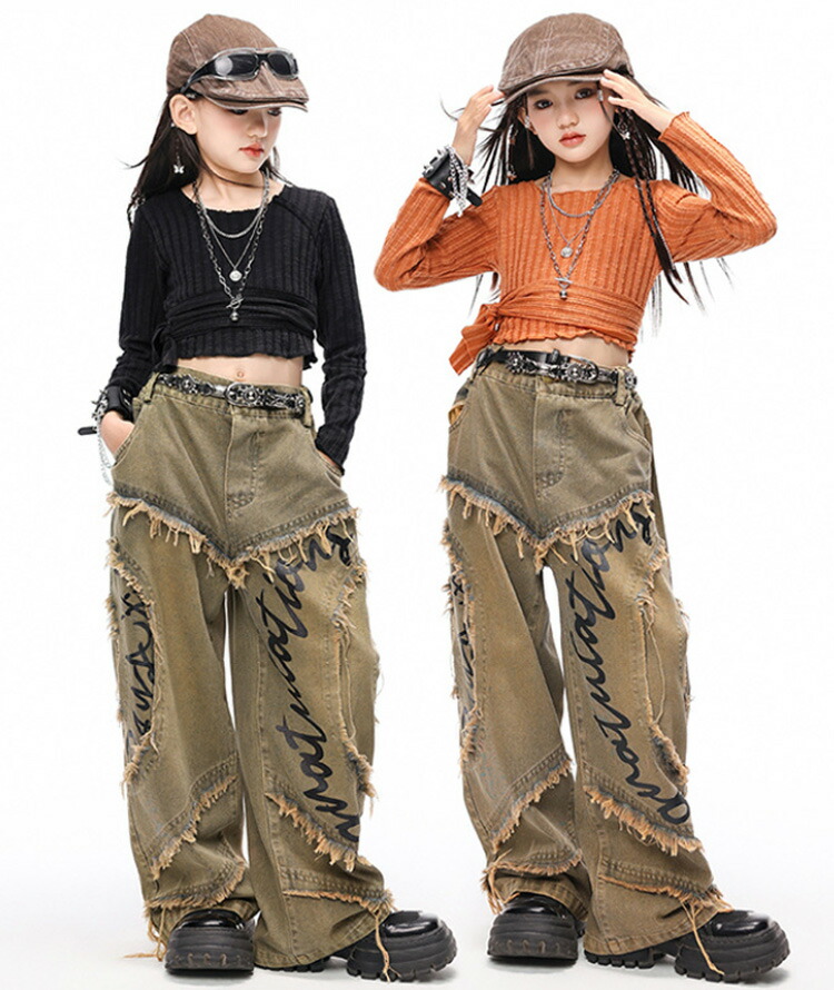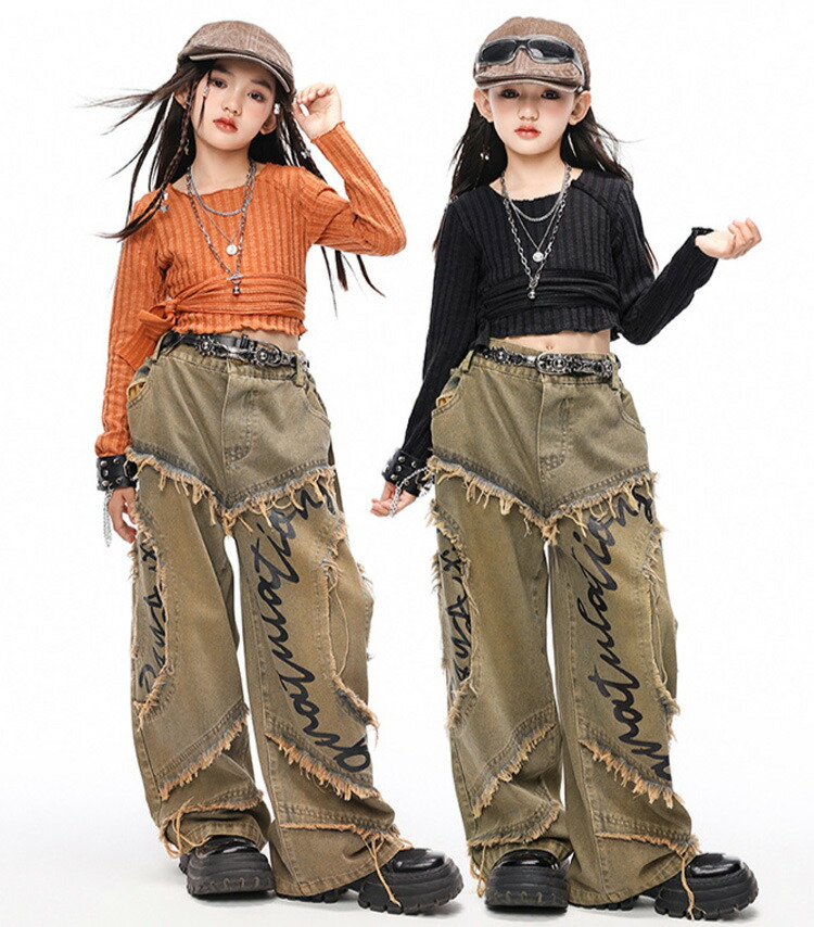 ダンス 衣装 ヒップホップ キッズ 花柄シャツ デニム パンツ 女の子 男の子 セットアップ 韓国 ジャズダンス かっこいい 子供 HIPHOP 演出服 発表会 イベント 120 130 140 15