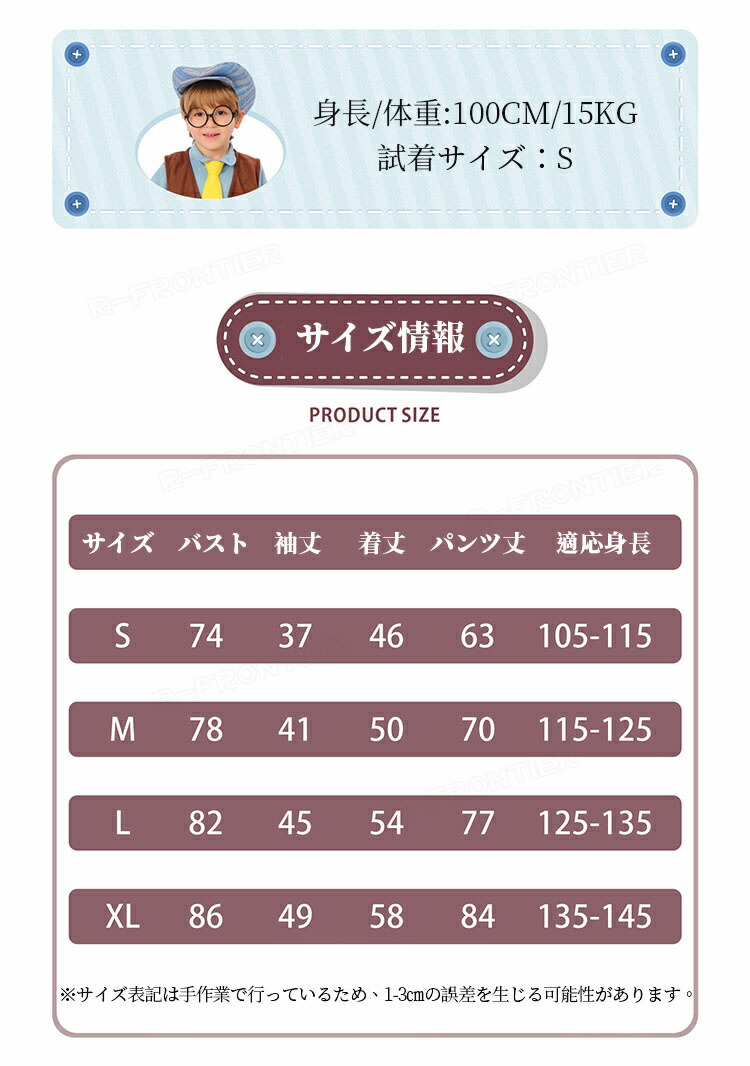 vertical-key: S (105cm-115cm) M (115cm-125cm) L (125cm-135cm) XL (135cm-145cm)