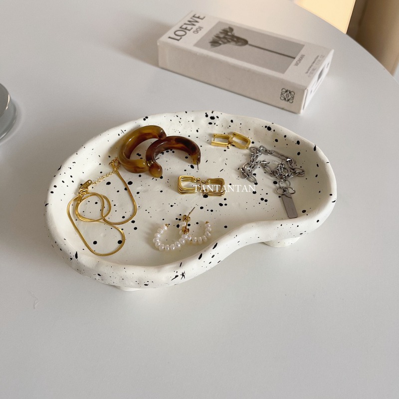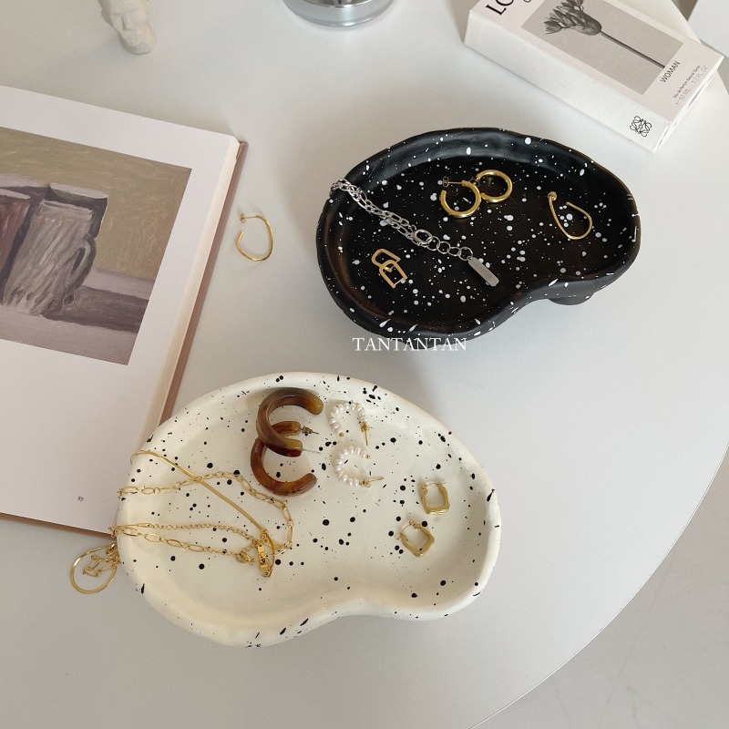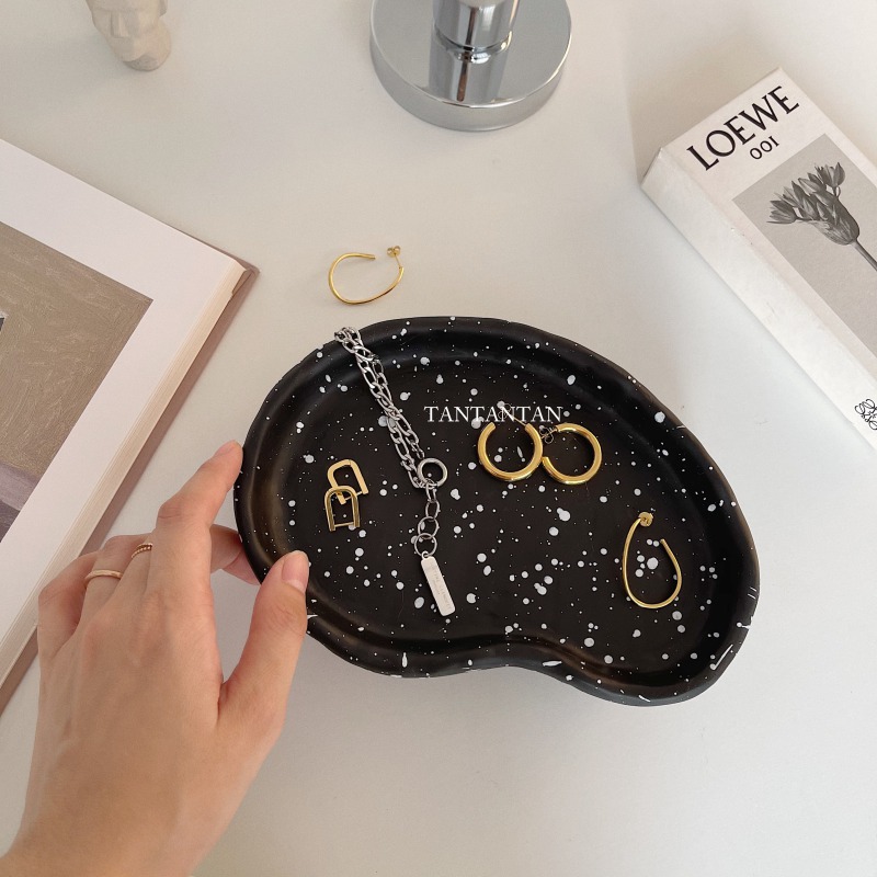 ストーンでこぼこインテリアプレートマルチトレイ韓国雑貨インテリア北欧おしゃれ大きいディスプレイ収納小物入れアクセサリー指輪ピアス鍵化粧品置物ホワイト白黒ブラックアンティークレトロ卓上ドリッピング