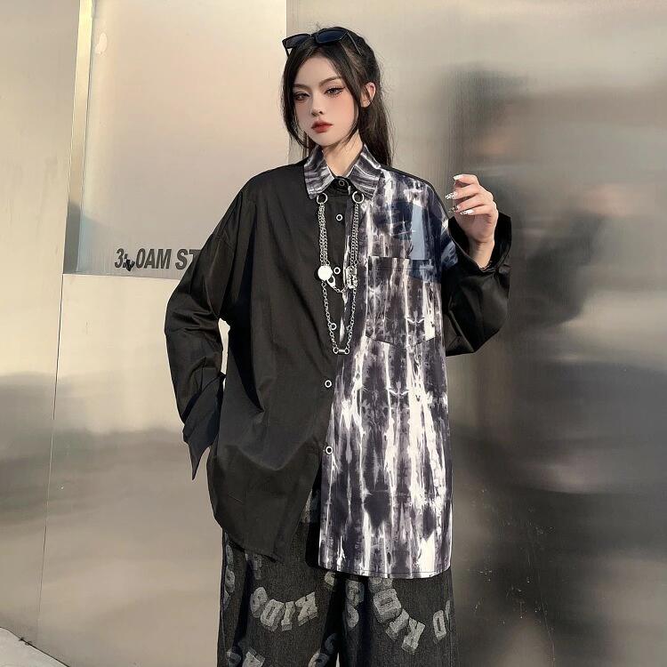 全2色 ジャケット ショート丈 長袖 切り替え バイカラー 配色 ヴィンテージ風 レトロ調 体型カバー 原宿系ファッション 韓国風ダンス 衣装 ヒップホップ HIPHOP 個性 奇抜 かわいい 青文字