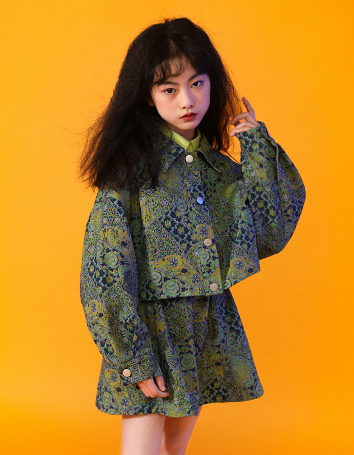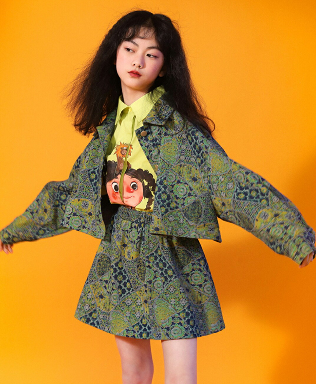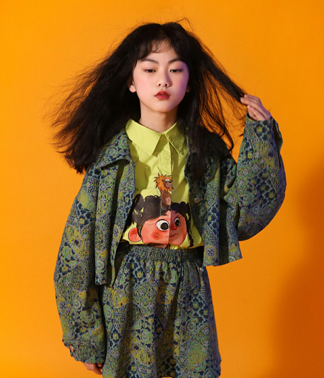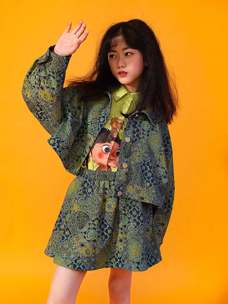 キッズダンス衣装 セットアップ デニム ジャケット スカート 2点セット 韓国 K-popスポーツ アウトドア 体操 ダンス 社交ダンス ウェア