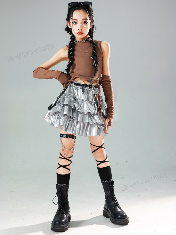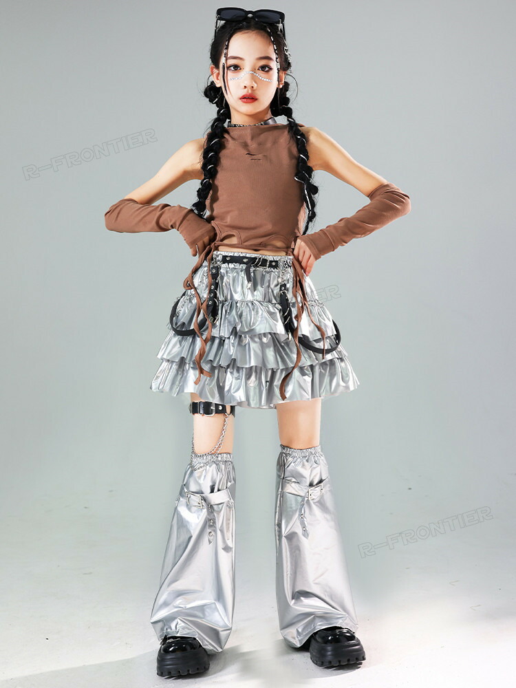 キッズダンス衣装 シルバー セットアッ